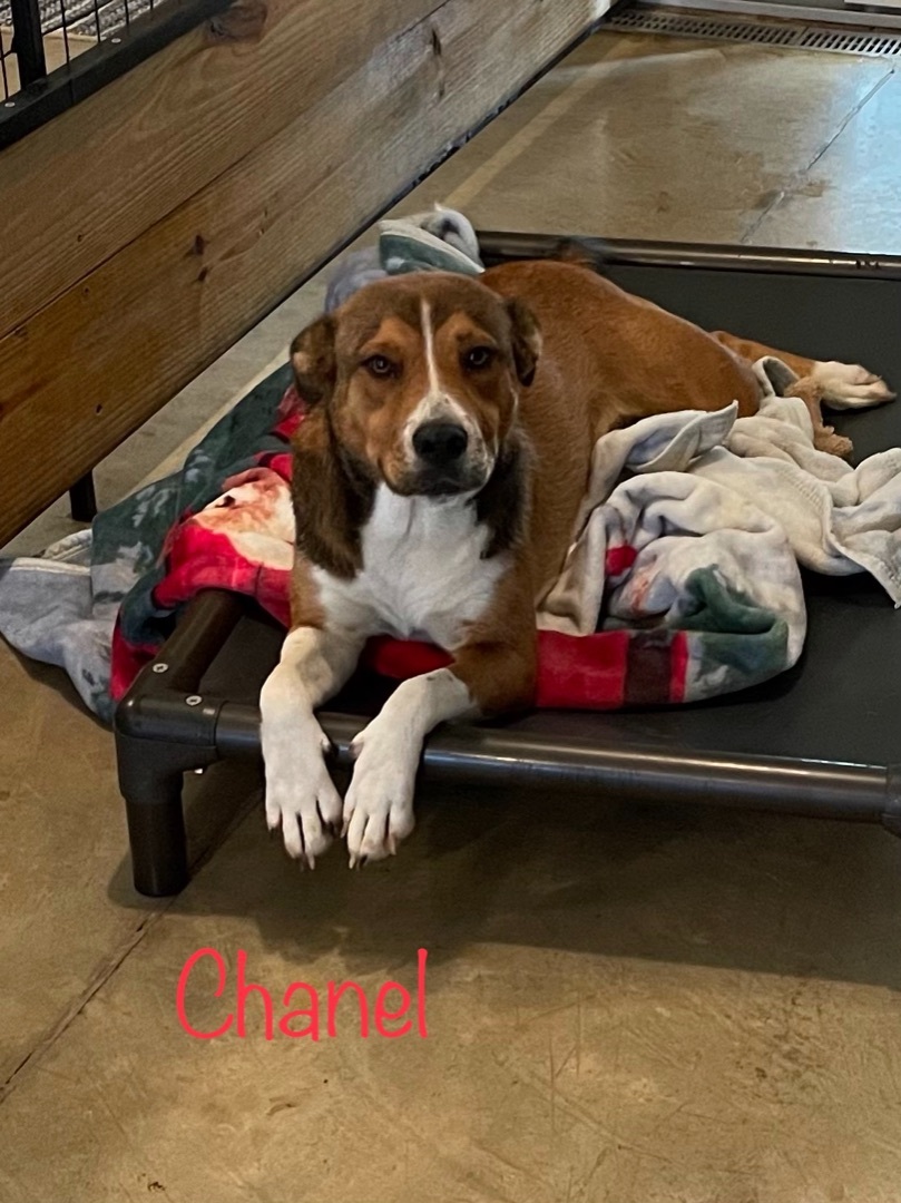 Chanel is around 8 months old, she is little on the shy side at first. Loves to be with people and other dogs.