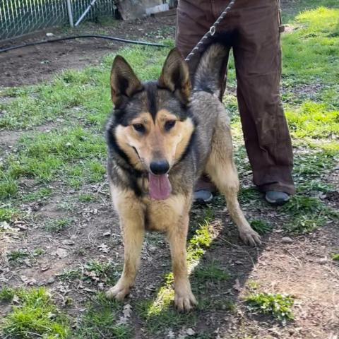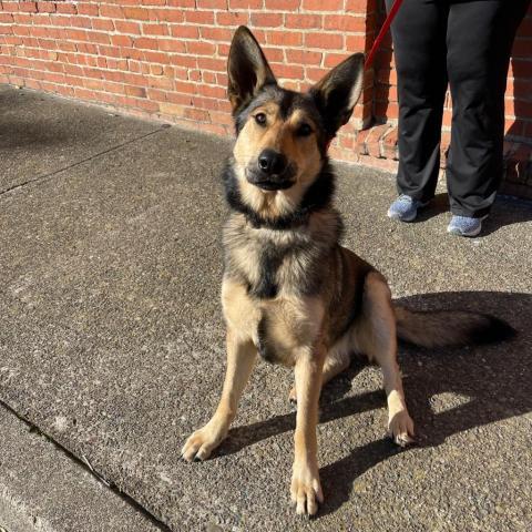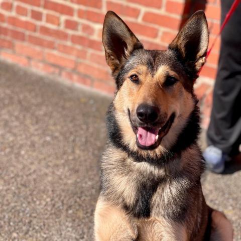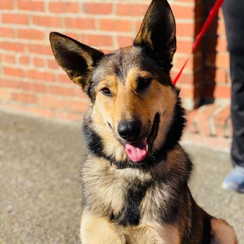 Roxy is affectionate, happy and social. She is people-oriented and, in fact, her tail wags and her eyes light up when she sees children. She is dog social and has lived with another dog, previously. Foxy Roxy will not be a good fit for a small animal/cat home. Our pretty girl rides well in a car, knows some commands, and after some initial pulling, walks well on lead. Foxy Roxy is an all-around lovely candidate for a moderately active (and FUN!) family with a yard. In a word, shes a gem! Come meet her!