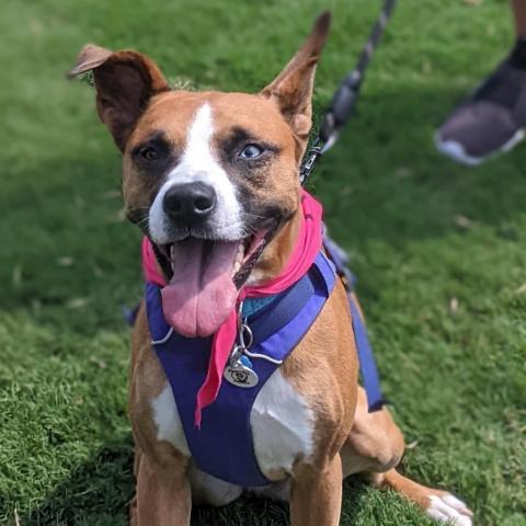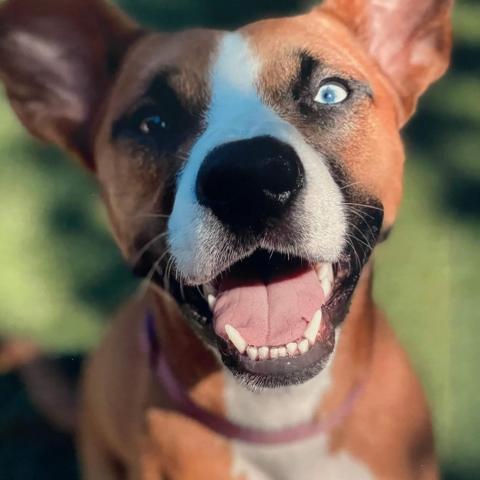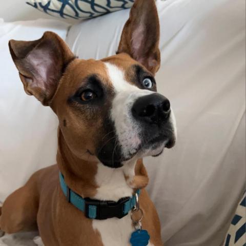 Sky is an adventurous and curious girl that is looking for the perfect, patient family to continue to give her the confidence and consistency she needs to be her best self. Sky would do best in a home as an only dog, or with an older dog that can teach her the ropes and show her boundaries. She is house-trained and crate-trained and knows some basic commands but needs someone to work with her on some her doggy manners and training. She is a very active girl and she loves to run, so a fenced-in yard would be ideal for Sky. Skys forever family would be active people with a yard to run and play with all the tennis balls she could imagine. A home with older kids would be best as shes a little high-energy for little ones. with a great yard to run and play with all the tennis balls and treats she could imagine. Sky is a princess and is learning how to co-exist with a house dog-mate, and can be dog selective on who she gets along with. Sky needs people who will give her love, a solid routine, and patience shes looking for!