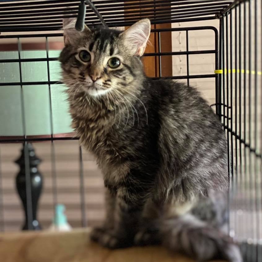 For more information, please contact foster moms: Michelle 256-520-2517 or Brittany 256-975-0768. INTRODUCING PANDA (EXPRESS)- DOB 4/12/2021- female, spayed, vaccinated, microchipped, etc. Panda and Chick-Fil-A were not born to Salsarita but grew up with her kittens. Panda is a very shy girl but is very sweet. She is very cute with her floof and she is always flirting or playing with other kittens. She would do best in a home with another kitten and would probably not adjust well to YOUNG (baby/toddler) kids. To adopt floofy Panda and another kitten, please call a number above!!