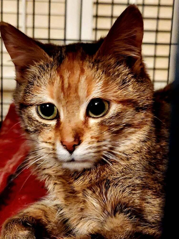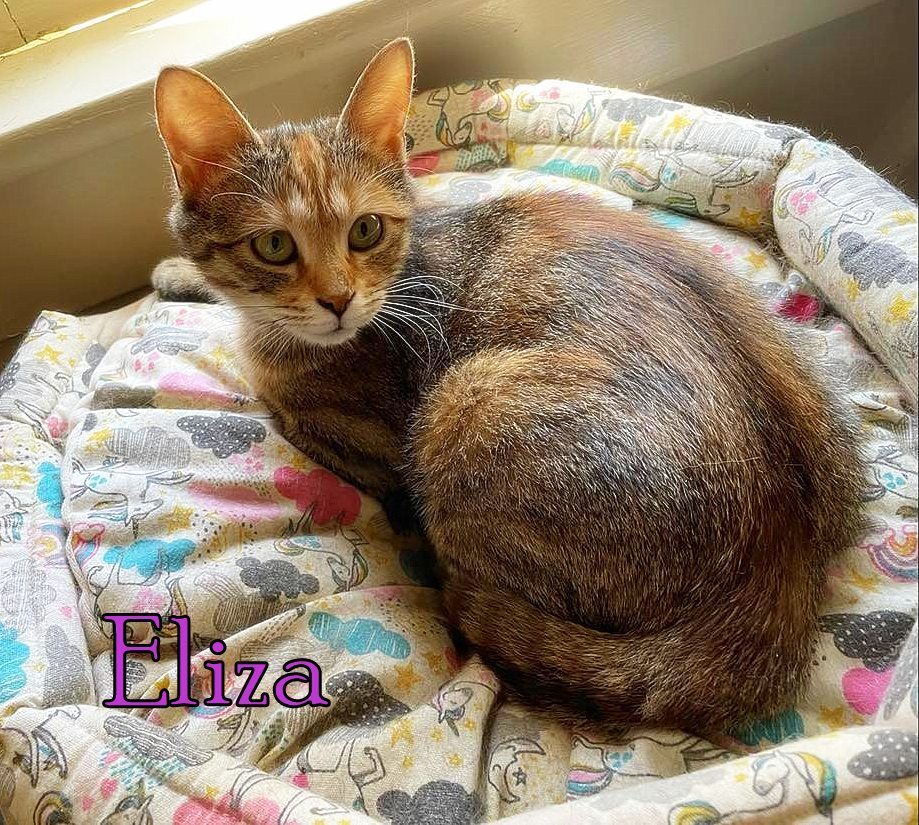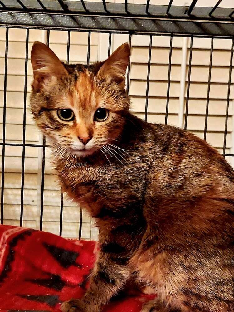 Meet Eliza! Eliza is a beautiful and unique Abbitab - a mix of Abyssinian ticking with a tabby tail - with colors of brown, oranges, and black. She is just about 6 months old. She was found last February as a young kitten in town, living with her brother, Toby under a shed. She and Toby are bonded and they must be adopted together. Adopt one, get one free. Eliza is very curious and likes to come into the room to see what you are doing and rub up against you. She likes to be pet, but is not yet fond of being picked up. She is just deciding that she likes and can trust people. Brother Toby likes to watch from the sidelines, occasionally allowing to be pet. Toby loves a nice sunny spot on a climber to lounge and look out the window. They have been through a lot together and will need a patient, quiet, low activity home where they can bloom. Both Eliza and Toby are spayed and neutered, have received 2 FVRCP vaccines, a rabies vaccine, tested negative for FIV and feline leukemia, and are microchipped with a lifetime registration. Interested? Questions? Please email us at GoodMews22@aol.com or call 540.717.4420.