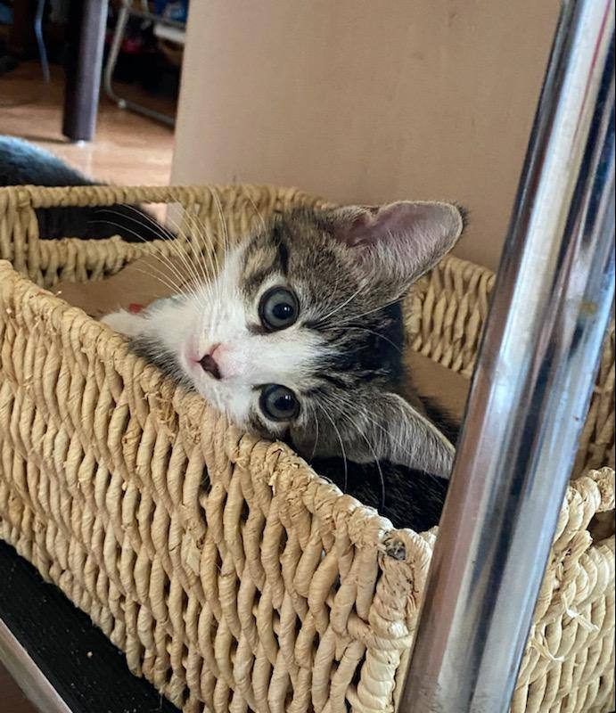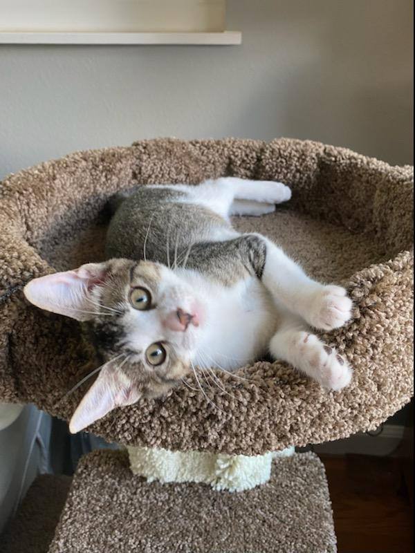 Bea, and her sister Lica, were abandoned at a church in a busy part of Kalihi before they were barely weaned. They are very trusting and mellow, but also active and frisky, Bea is equally comfortable chasing Lica around the house and being cradled to sleep in her humans arms. The two girls are inseparable now, but we suspect they could get used to a loving family with another kitten if not adopted together.