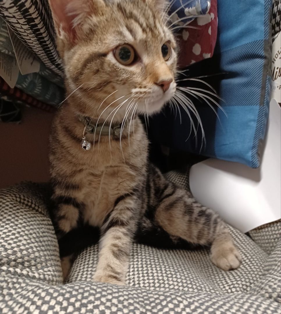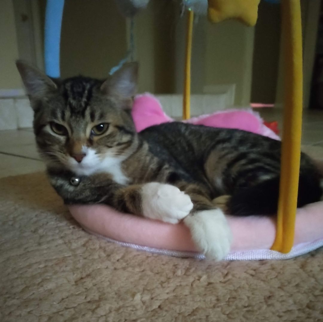 OUTGOING AND ADVENTUROUS DOB 1/10/22 Hello! Im Cami, a curious and very playful brown tabby gal with white tuxedo markings. Im more outgoing than my shy sister Lady Bug. I love to climb and explore and then to sit quietly in my foster meowmys lap to take a quick cat nap. Ive been around kids, dogs, and other cats in my foster home, so Im very adaptable. In fact, one of the resident dogs is like a big brother to me, and I love to snuggle up with him. Playtime is my favorite activity. I love running through the cat tunnel, climbing the cat tree, chasing my siblings tails, and batting around "spring" toys. And when Im thoroughly exhausted, I take a "time out" by basking in a sunbeam on the window sill. My foster meowmy says Im awesome, and I know its true. I hope to find a loving forever home soon. Although were available separately, hopefully I can be adopted with Lady Bug. That way we can keep each other company when youre at work or on vacation. HOPE ID 22-0320-G038 If you are interested in Cami and would like to fill out an online Cat Adoption Application, please go to http://www.homelesspets.net/adoption-forms/cat-adoption.php. Submitting an application does not obligate you to adopt, but it initiates contact with us and gets the process started. If you have questions prior to filling out the application, email us at hope@homelesspets.net, and a volunteer will get back to you.