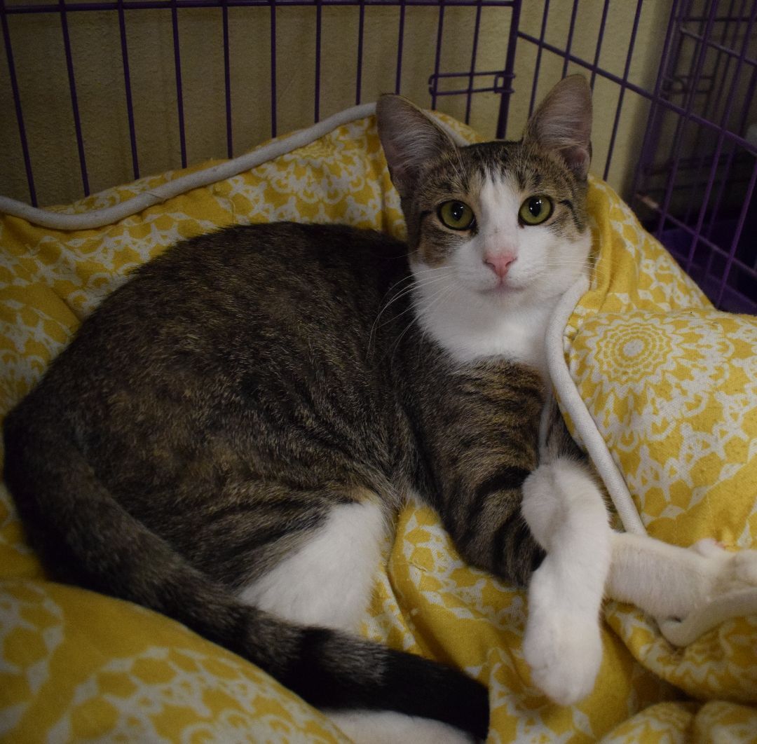 CONFIDENT AND GOOD-NATURED DOB 8/1/21 Hello everyone! Im Lizza, a sweet, friendly brown tabby gal with white tuxedo markings and an angelic face. I dont waste much time getting to know you. I have a great personality as Im confident and good-natured. Im very smart and love exploring my world to find all the good places to play and nap. Im beyond the destructive kitten stage and have perfect litterbox and cat-scratcher manners. Im a pretty green-eyed girl who cant wait to meet you. HOPE ID 22-0310-G029 If you are interested in Lizza and would like to fill out an online Cat Adoption Application, please go to http://www.homelesspets.net/adoption-forms/cat-adoption.php . Submitting an application does not obligate you to adopt, but it initiates contact with us and gets the process started. If you have questions prior to filling out the application, email us at hope@homelesspets.net , and a volunteer will get back to you.