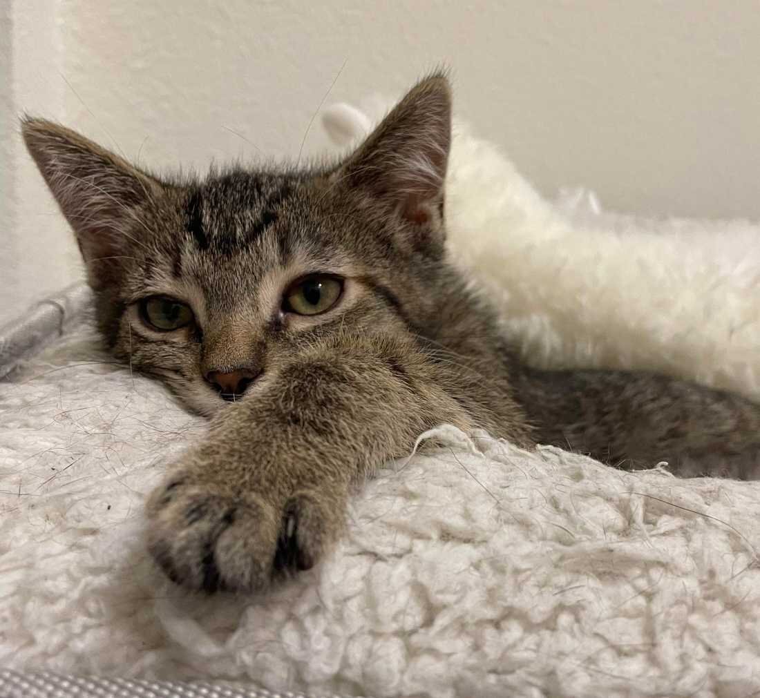 DOB: 4/19/22 MUST BE ADOPTED WITH HARMONY. If you want a sweet, snuggly, cuddly cat, you want Symphony! Whether its on her foster mama, on a plushy bed or on her bonded sister Harmony, this kitten is ready to hug and hit the snooze. True to her name, Symphony responds to her foster mama with lovely chirps as she wakes up for nap - which usually means shes hungry or wants to play! Despite being younger and smaller than her sister, Symphony can hold her own and she chases, hunts and rolls around with Harmony. As the only surviving member of her litter, she is glad to have her sister to romp around with and will do great in a home with other cats and children (although she can be shy at first). If you are interested in learning more about this kitty or in adopting her, please click here to email her foster parent.If you are unable to send an email to the foster parent through the link included above, please contact us and let us know what kitty youre interested in. You may also fill out our adoption questionnaire to speed up the screening process. Be sure to name the cat in the CAT PREFERENCE field at the beginning of the questionnaire. If the above links arent live, our contact form and questionnaire are available on our website at www.kittenrescue.org.For our fees and adoption policies and procedures, please click here.