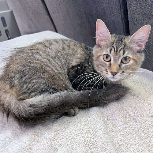 Red is a female medium-haired gray tabby, born on May 5, 2022. Red and her 4 sisters lost their mother at a young age, they were then bottle raised in a foster home. Red is friendly with cats, dogs, and people. She has a sweet, fun demeanor and will fit well into any family. Red is litter box trained and loves playing with toys. The adoption fee is $100. This covers the cost of spay/neuter, PVR, Rabies, flea, tick, ear mite and worm treatment. To adopt, you need to first fill out an application. Go to: https://www.rutherfordcountyhumanesociety.org/CatAdoptionApplication.html We are located in Western North Carolina. Optional transport is weekly. After your application is approved, we will contact you regarding cost and delivery if you so desire.