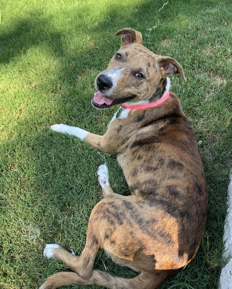 Hi there, Im Leni. I was saved just in the nick of time from the euthanasia list at a local shelter by my new favorite people at The Street Dog Project! Since being rescued I have been decompressing from the shelter life and setting in with my foster family. I am learning that the world really isnt that scary after all! I am around 1.5 years old and about 45 lbs. I am discovering all the good things in life like treats, toys and cuddles! I love hanging around with my foster parents and my two-legged foster siblings and playing with them in the backyard or lounging with them on the couch. I am crate trained but I am still working on my potty training and walking on a leash. My foster mom said she isnt worried since I am a fast learner and very food motivated. Do you think I would be the perfect addition to your family? If so, Id love to meet you! Fill out an application at https://www.thestreetdogproject.org/adopt Questions? Please email placement@thestreetdogproject.org.