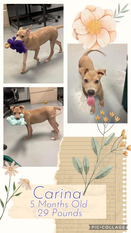 Meet Carina! She came to us as a stray with almost no hair and underweight. Since she has been with us she has started growing her fur back (we finally were able to see her white toes) and is gaining weight at a steady pace! She is about 5 months old and loves loves loves stuffies!