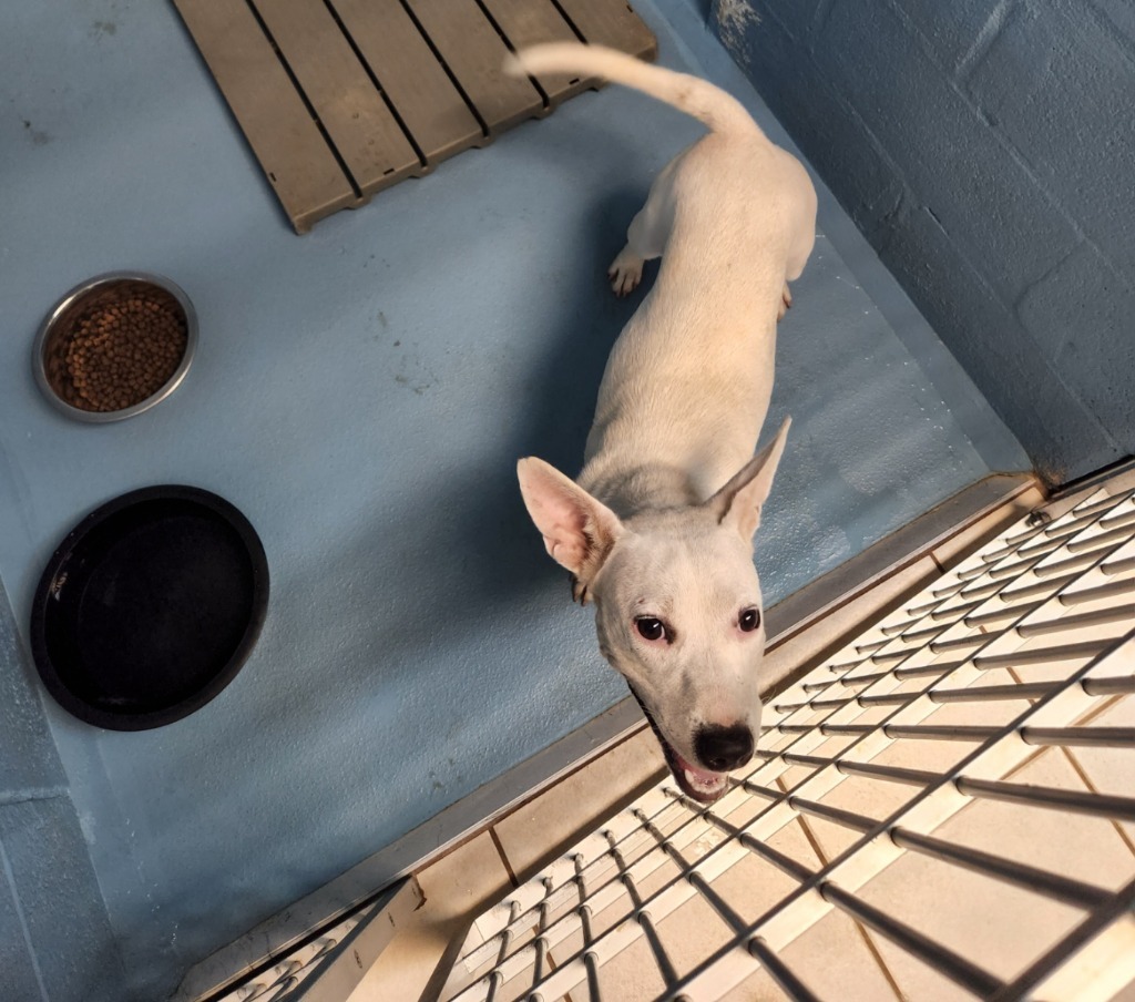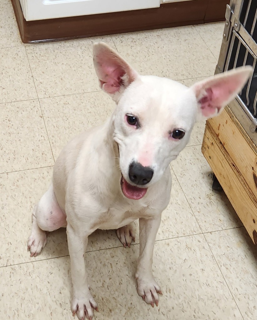 Mitzi is a sweet, high energy girl. She knows the sit command and is very affectionate. She is almost full grown so she wont get much bigger than she is now. Mitzi was found as a stray so we dont know much about her history. She is up to date on vaccines, has tested negative for heartworm disease and has been spayed. We suspect Mitzi may be deaf. She is very attuned to look at her humans faces for cues and training should not be a problem.