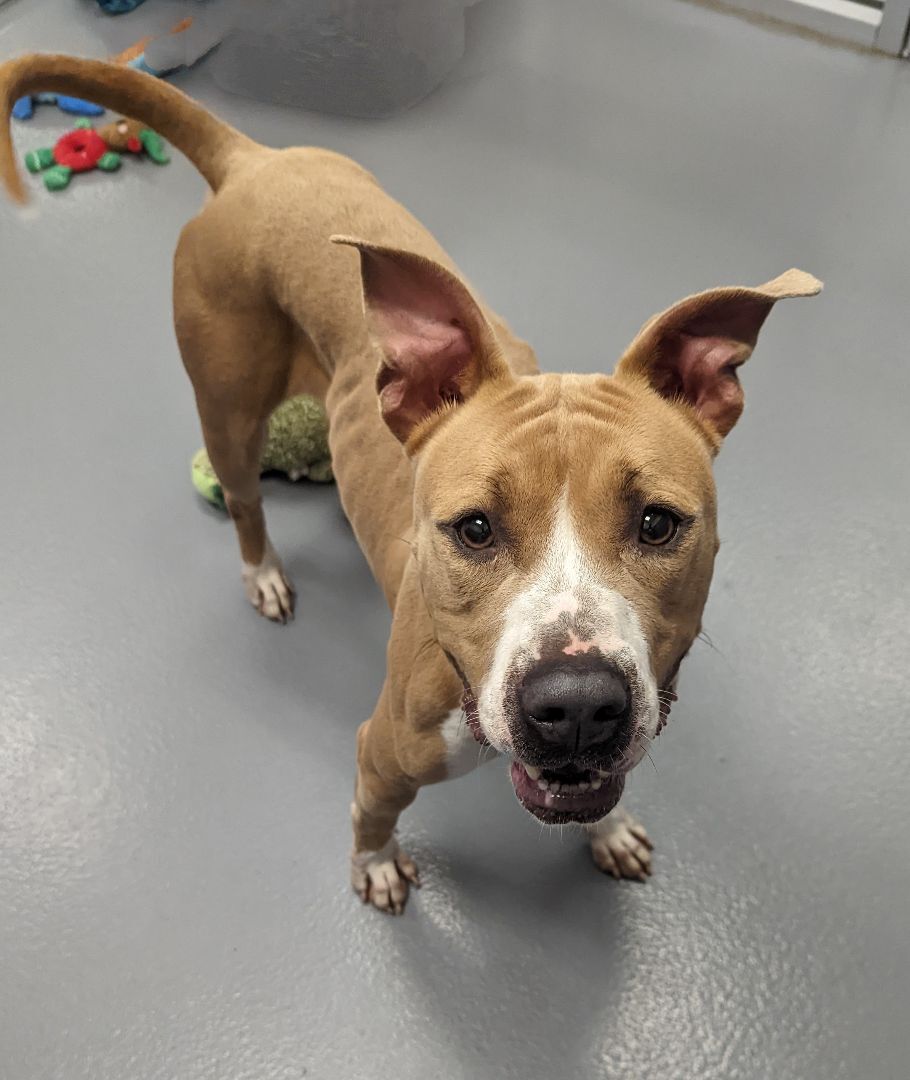 This sweet girl walks well on a leash, takes treats like a lady, knows sit, likes back scratches, and could use some TLC. Bailey is 3 years old. She currently weighs 50 pounds but needs to gain weight. If you are looking to add a large adult dog to your family, she might be the pet for you.