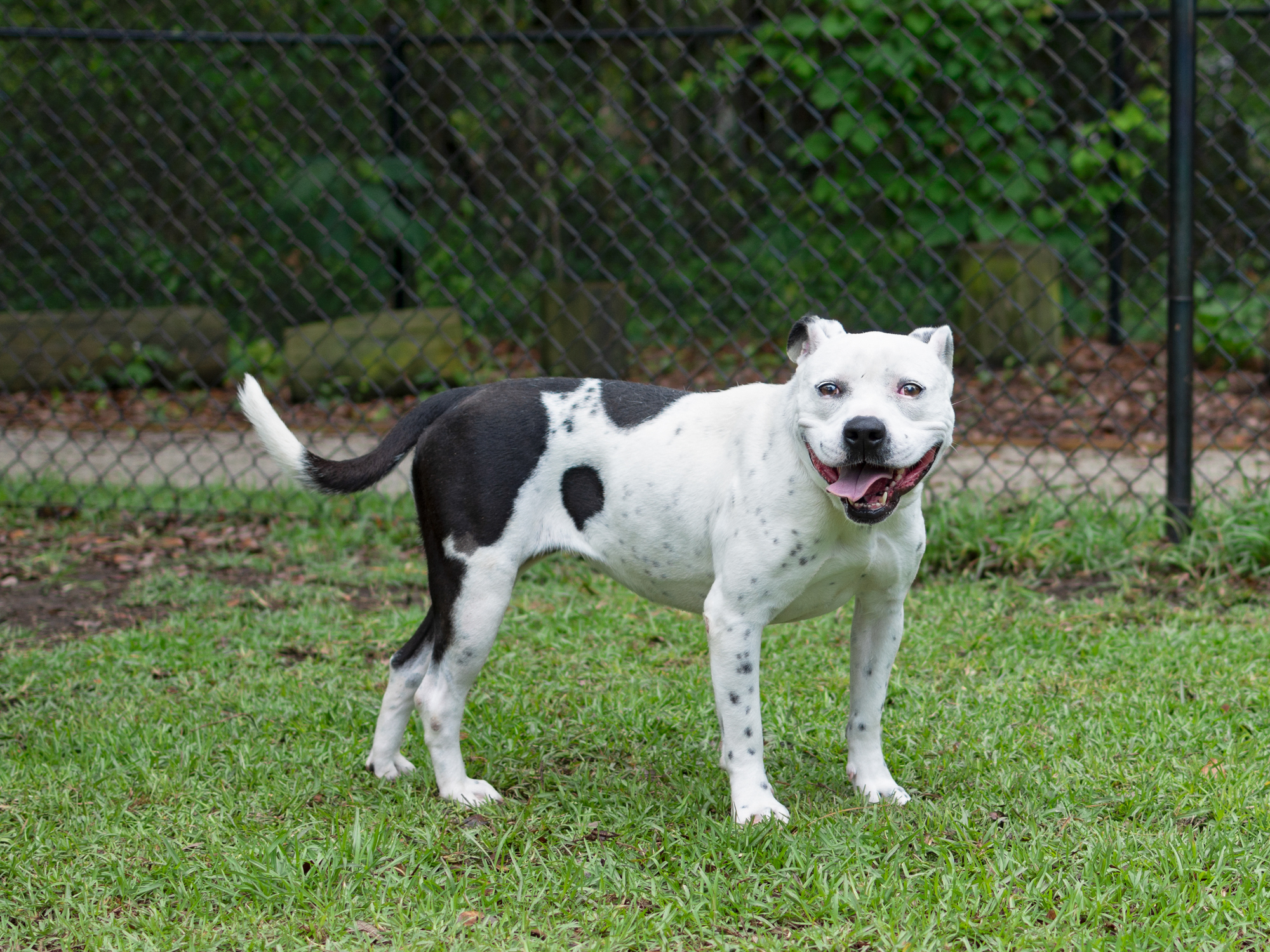 Spotty Dotti is looking for her furever family! Miss Dotti is a queen who must be the only animal in the home. She is a sweet 5 year old girl who has spent more than half of her life in a shelter. Dotti can be timid around new people, especially men, but she warms up and becomes your best friend! Dotti is currently in a foster home with children and she does great! She’s a snuggler who loves to be next to you. Dotti can be strong on a leash, so walking her with her harness is the best. Dotti has been waiting for most of her life for her furever home to find her and she deserves it! She is a volunteer favorite who can never get enough treats. Want to add this stunning girl to all of your family photos? Come get her! Dotti is currently being spoiled in a foster home! Give us a call at 843-237-7297 to schedule an appointment to meet her!