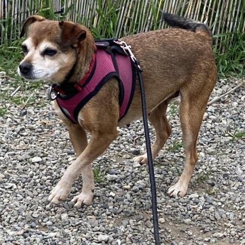 Laverne is an adorable, 8 yo terrier mix who is approximately 12 lbs. She loves going for walks and walks well on a leash. She is treat motivated, and crate trained. Laverne was rescued from death row at a Central Valley shelter with 3 other dog friends. We think she was probably an outdoor dog who had very little socialization before being sent to the Shelter. Laverne is a timid, nervous girl when meeting new people and being in new surroundings. She has made a huge amount of progress since she first arrived. The ideal home for Laverne would be a calm, adult only home with dog experience. Laverne is not a dog for first time adopters. She needs adopters who are willing to be patient and to give her the time and space she needs to feel comfortable, confident and loved. Another dog in the home would be hugely helpful. She is spayed, UTD on vaccines and microchipped. Applications are being accepted and qualified applicants will be contacted. If you are interested in adopting Laverne, we recommend that you come and spend time with her on several occasions so that she becomes comfortable with you.