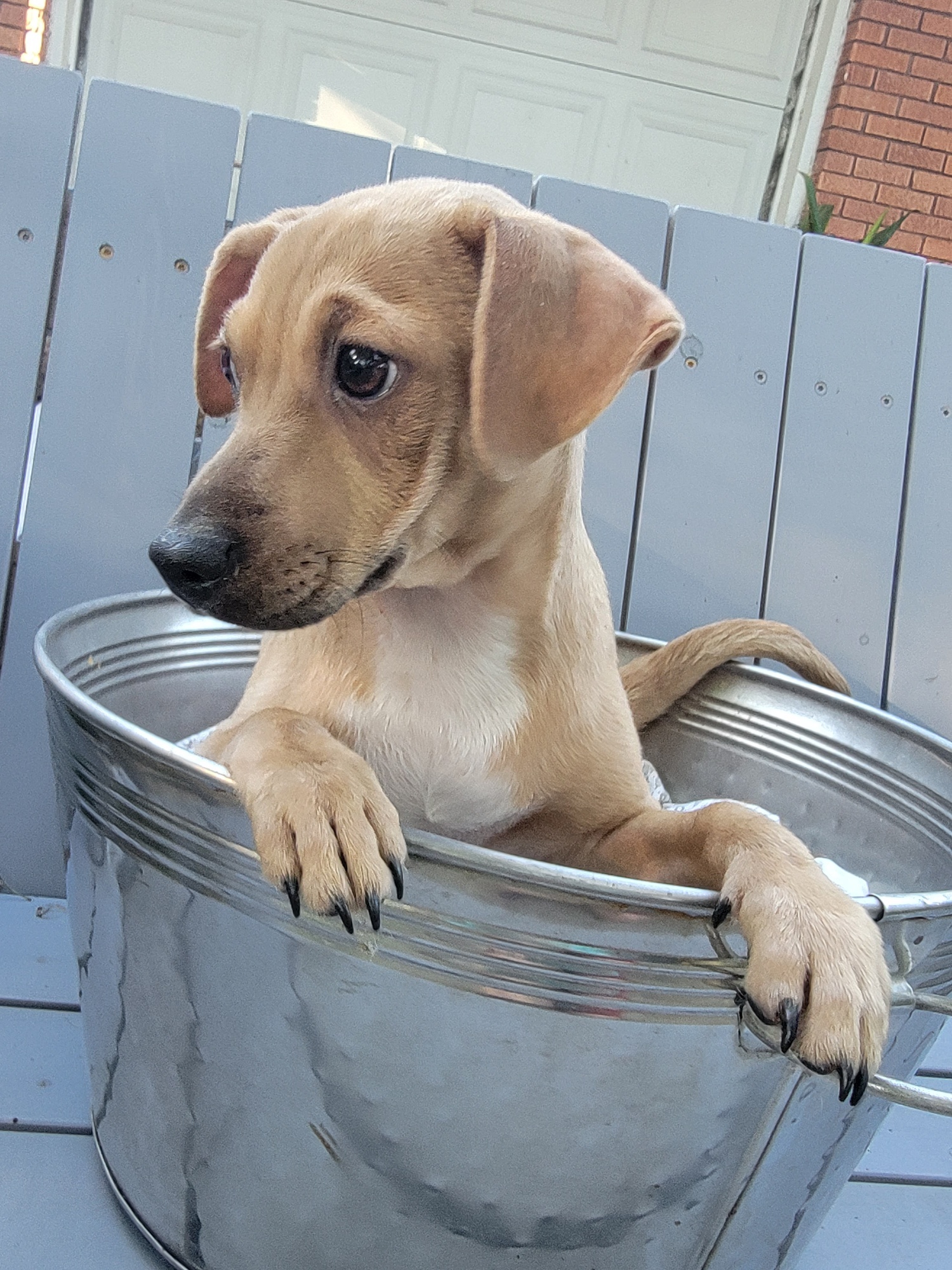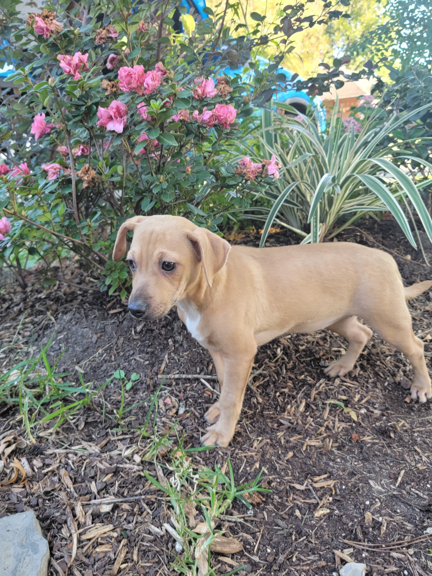 NAME: Wanda Sex: female Color/Pattern: brown/tan Breed(s): terrier mix BDAY approx.: May 2022 Description Wanda is a happy, loving girl that will be your best friend. *Personality* Wanda is playful and wants to be a part of everything you are doing and will talk to you. She loves to play and run and play tug of war. When she gets played out and loves her treats. She is trainable and loves her toys. *Background* Wanda and her siblings were abandoned near my job, they were tearing apart a fast-food bag, they were very grateful to be found and instantly fell asleep when I had them in my car. *Compatibility* Dogs - YES Cats - unknown Kids - unknown This puppy is available on a foster to adopt basis. He has received one set of vaccines so far and will be eligible to go to his adoptive home after the second set of vaccines in 3-4 weeks. Schedule your meet and greet today, this cutie will go fast! If you are interested in meeting me, please contact my rescue family at GNARHouston@gmail to arrange a visit with my foster home!