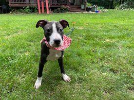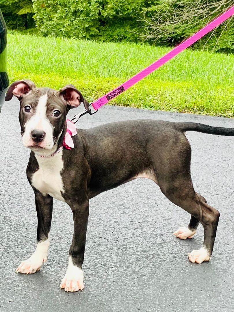 MEET DAPHNEY! This absolutely adorable, super sweet and lovable pitty pup is about 15 weeks old. She is part of the "Grease" litter, named after the famous musical! Good with kids (over 7 because of exuberance). The mom of the litter is beautiful SOPHIE, third pic. DAPHNEY is utd, dewormed and chipped. APPLICATIONS ARE BEING TAKEN NOW ... pups go quick! Please contact reboundhounds@gmail.com for an application. PREVIOUS OR CURRENT DOG EXPERIENCE given priority. DAPHNEY IS IN SALEM, NY