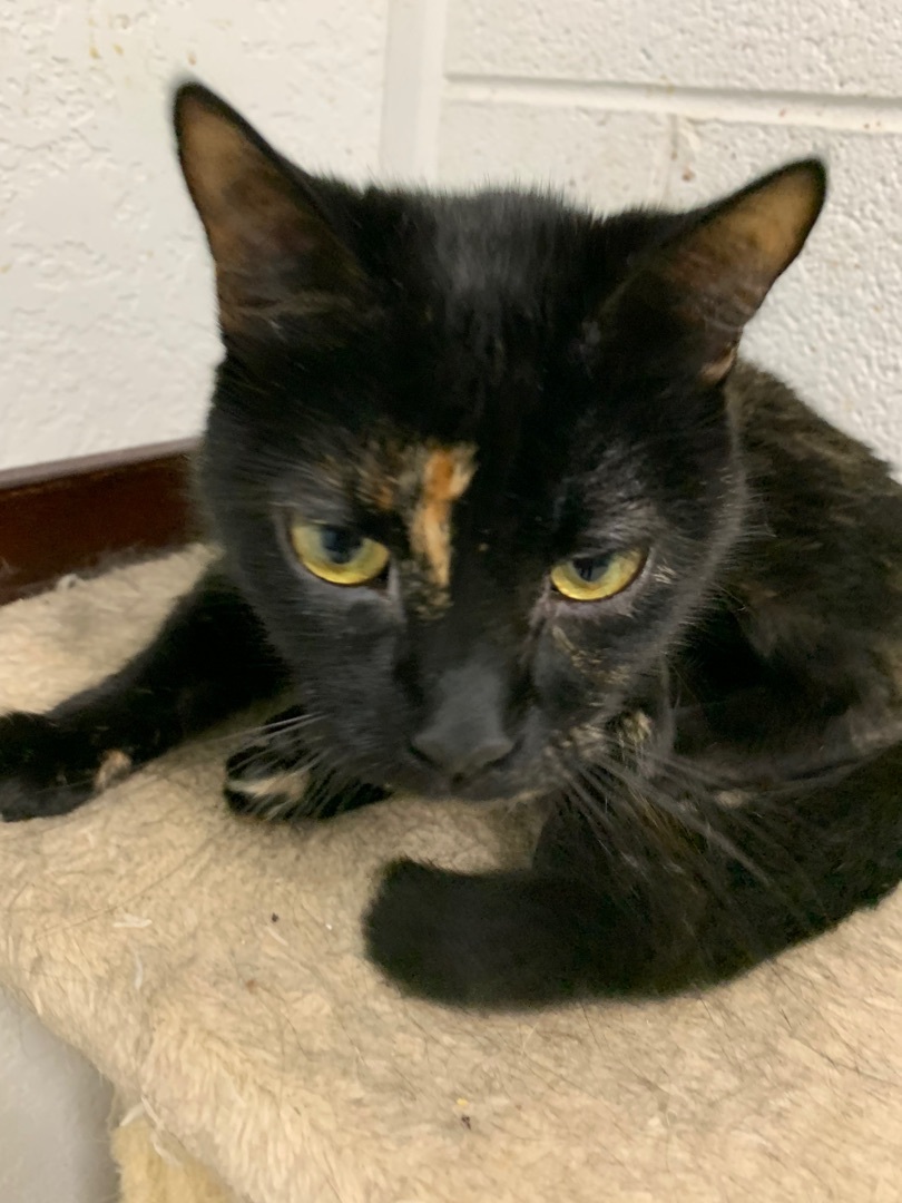 MILA is about 2 to 3 years old. She is a shorthaired tortoiseshell female cat, which means blended black and orange markings only. Unfortunately, her young family is currently homeless and had to surrender her to the shelter at the beginning of August. They wanted to do the right thing by her and give her a chance to find a loving, permanent home with a person or people who can adequately care for her. She is delightfully sweet and feminine and has already shown the other cats in the adoption center that she is no threat to them. She does still have to be spayed before she can go home with you. That procedure will be scheduled once she is adopted. To meet her in person, CALL the shelter to schedule an adoption appointment. Staff can explain the adoption procedures and fees when you call. The shelter does require EXACT change in the form of cash or a check. The shelter is UNABLA to accept credit or debit. So, please go prepared!