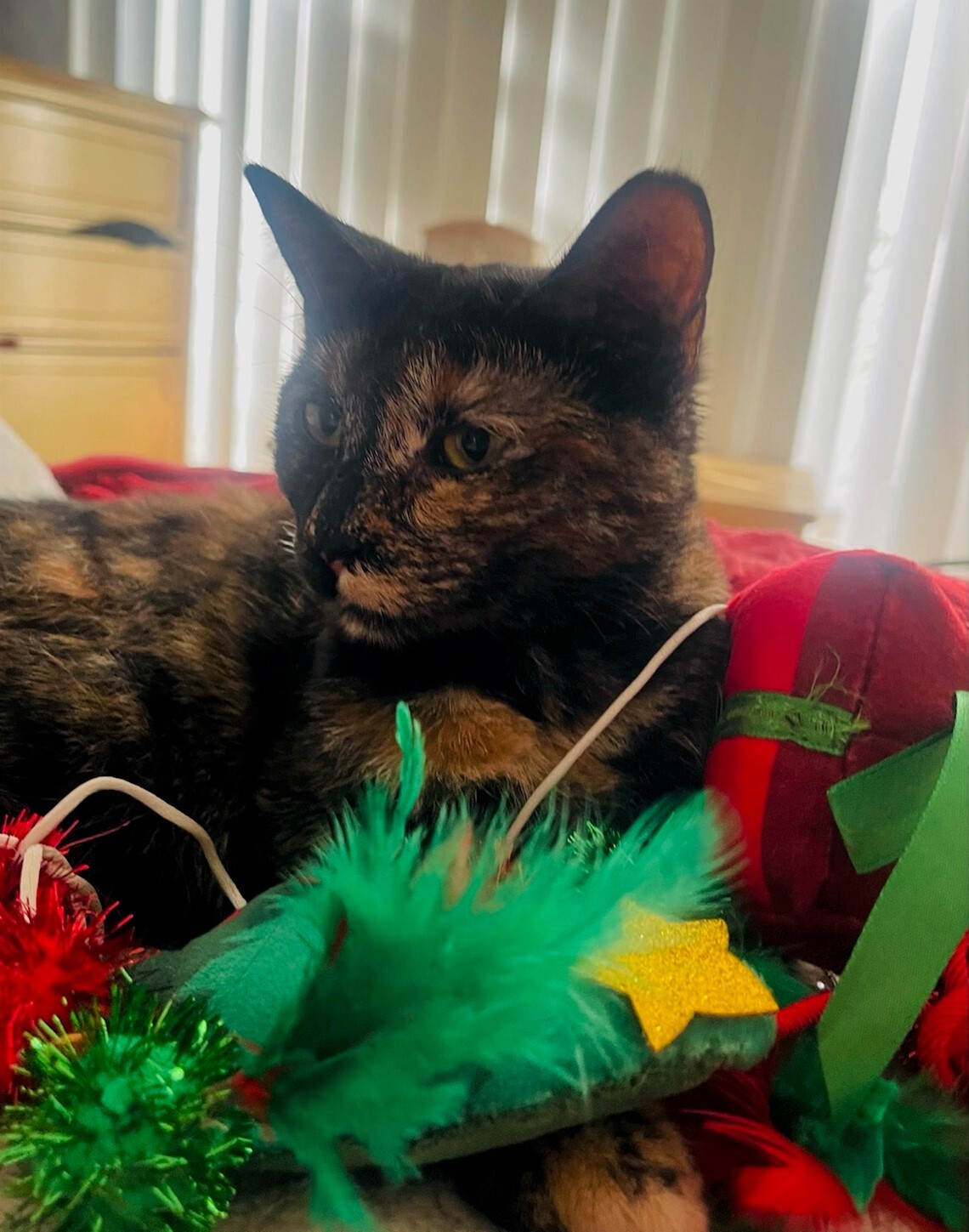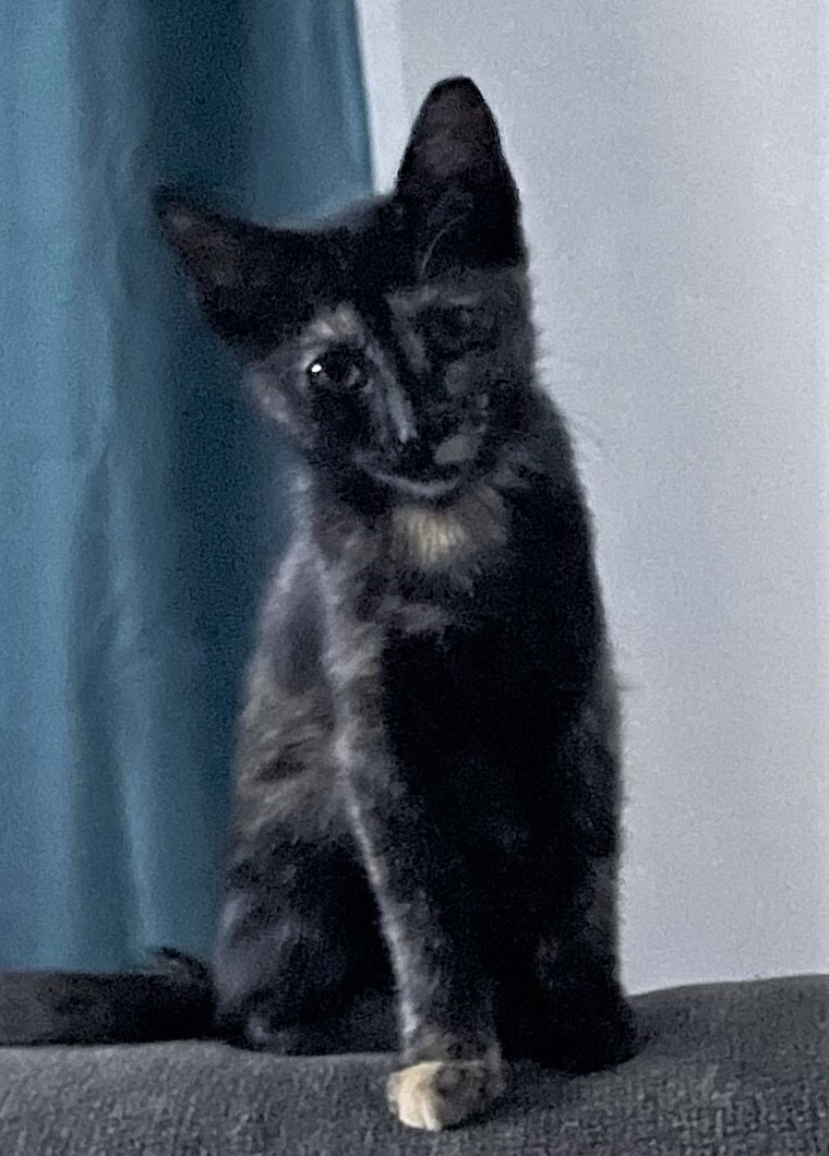 You will be mesmerized by Elektras gorgeous colors and amazingly beautiful eyes. Elektra is a young, playful, and typical tortie girl -- shes stunning and she knows it! She loves other kitties, so wed love to see her go to a home that already has a resident kitty. Elektra can be a little shy at first, but once she trusts you, shes extremely loyal and all yours! She is a total beauty both inside and out. Shes loving and gentle -- and wouldnt you love to gaze into her gorgeous eyes every single day???!