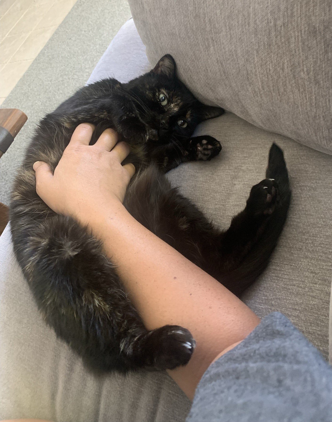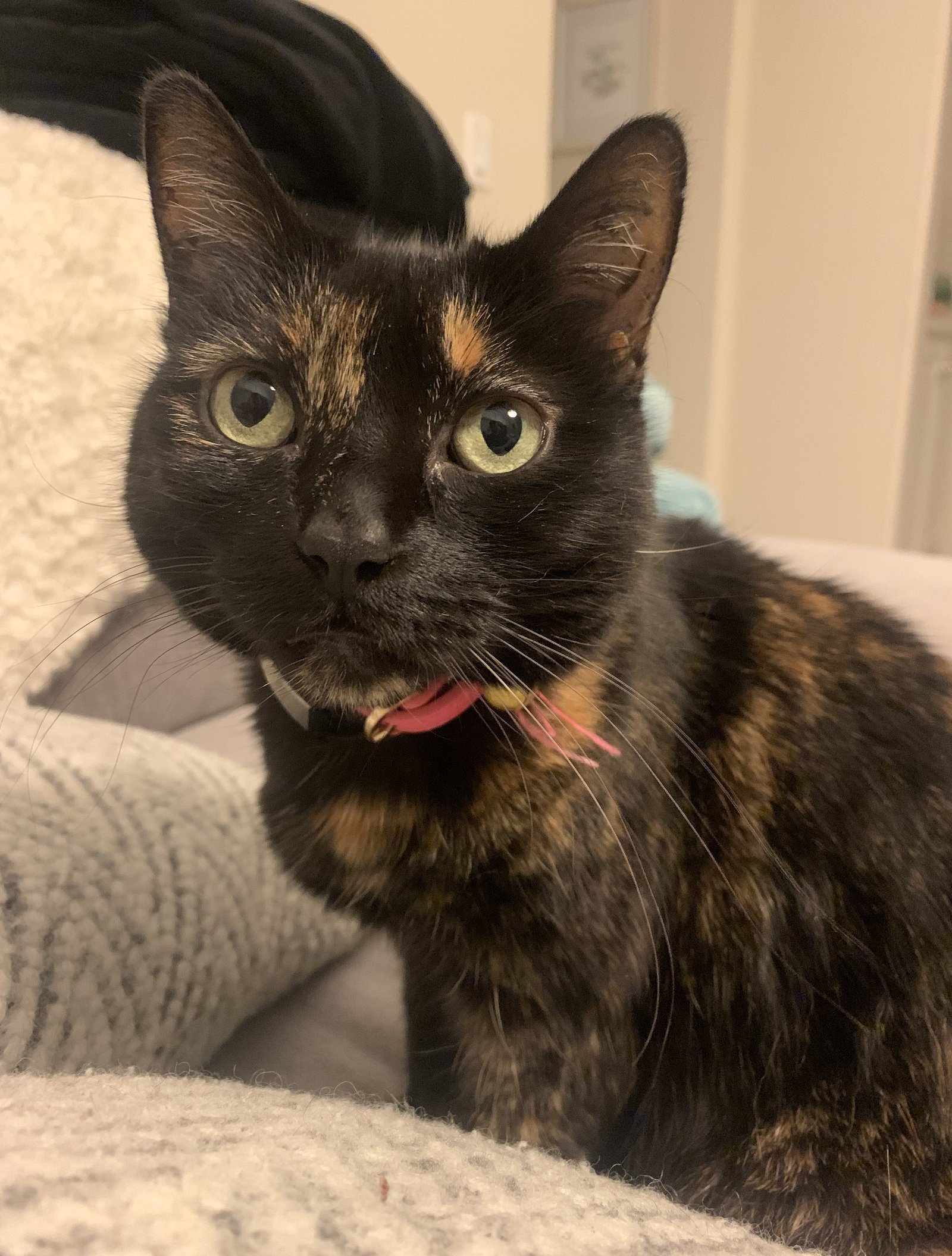 This is a courtesy post from a former SPOT kitty! Squirt is a 10 year old indoor cat but still full of lots of love to share with you. Shes a domestic short hair with tortoise shell coloring. Mostly black with some orange spots with a really cute orange spot on her paw/toe. Squirt is affectionate and enjoys being around people. Shed do best in a home where someone is home most of the time. She fetches bottle caps and hair ties and will play fetch for as long as youre willing to play. She enjoys belly rubs and cuddling at night. Do you have time and some extra love to add Squirt to your home? As with all SPOT cats and kittens, Squirt is spayed, shes up-to-date on her vaccines, shes been dewormed, she was screened negative for FELV, and shes micro chipped. If youre interested in adopting Squirt, please contact Jenni at 858.337.2412 as well as fill out the cat adoption application below: http://spotsavespets.org/adoption-application-cats To follow updates on SPOT kittens finding their furever family, LIKE us on Facebook: https://facebook.com/spotsavespets/