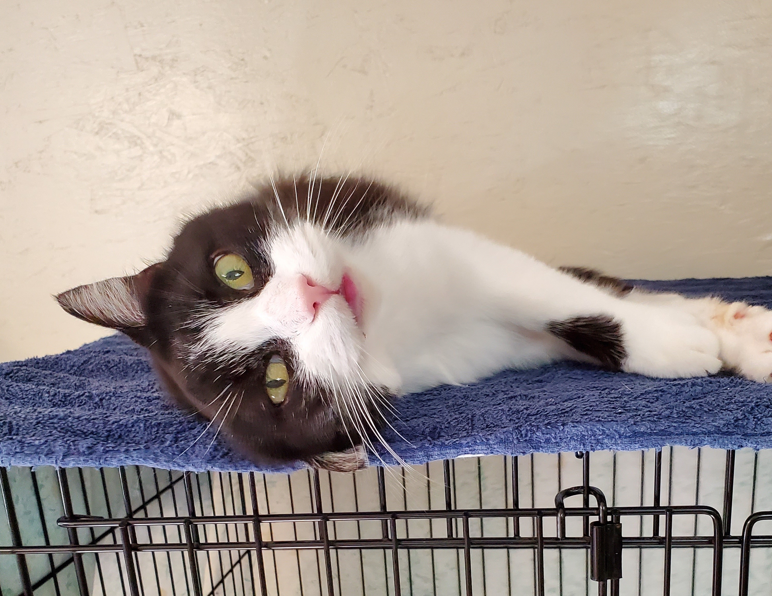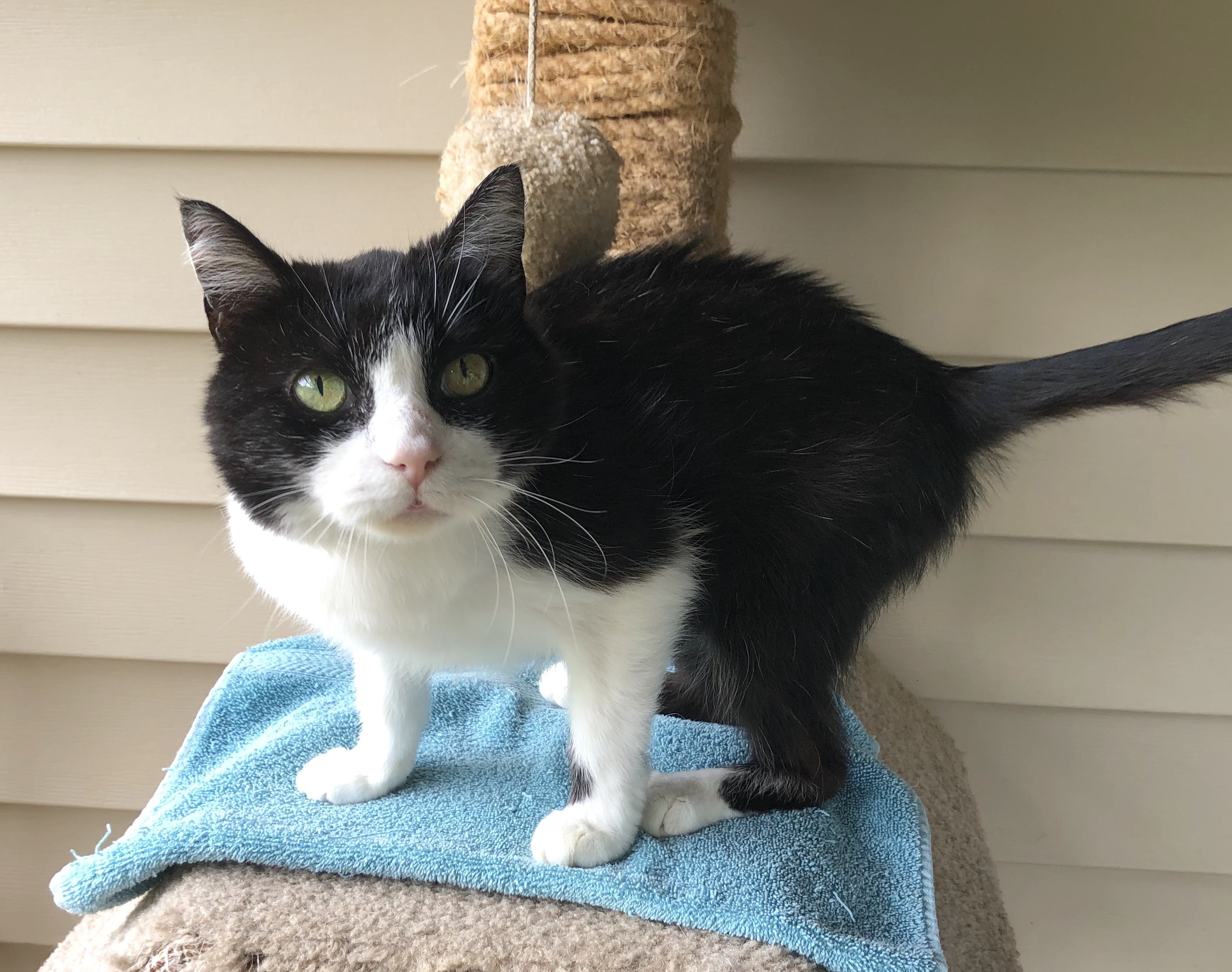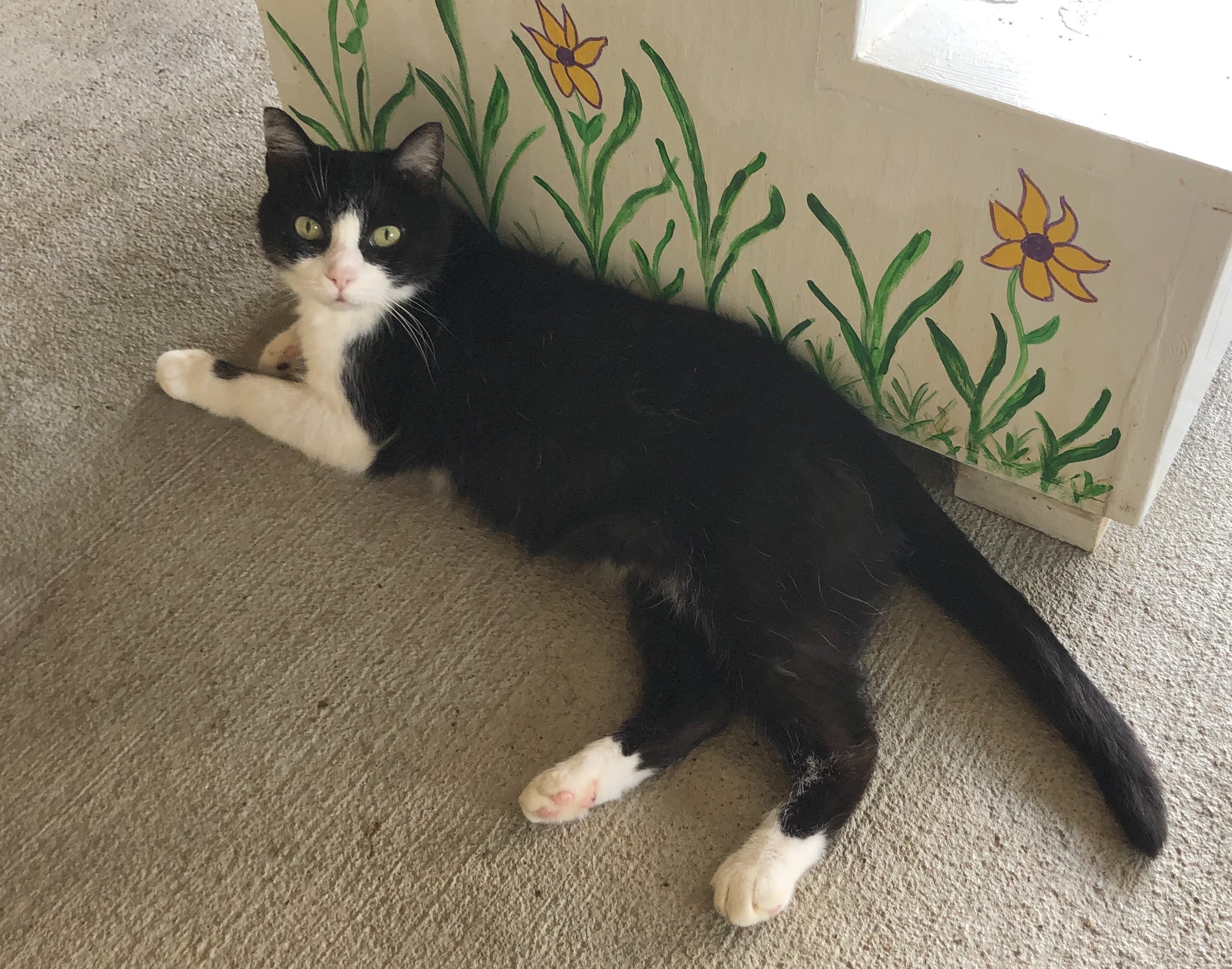 COME PET ME! YOU KNOW YOU WANT TO! THE BASICS: DSH; black and white ADULT FEMALE; EST DOB: 2015 ARRIVAL: May 30, 2020 HISTORY: Vivien was a transfer from the Fluvanna SPCA. MEDICAL NOTE: Vivien tested positive for feline leukemia virus. Vivien is a happy cat who wears her tuxedo with aplomb. One of the first to greet visitors to L3 and incredibly receptive to pets, Vivien has won over many with her polite, easygoing personality. Vivien can sometimes get overlooked because she doesn’t demand attention like some of the other cats in her room, she just waits for you to come to her and is happy when you do. Vivien roams all around the room and porch so might be found outside, on top of a condo, on the floor, or any number of other places. She likes to make use of all the amenities CFC has to offer! Due to her FeLV+ status, Vivien cannot be kept with cats who do not also have the virus. She gets along great with others, though, so would make a great addition to a FeLV+ cat home!