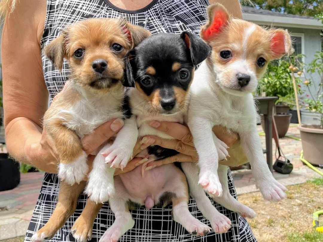Piper is an 10 week old, 4 pound, female Terrier/Chihuahua mix. We expect her to grow to be around 15 pounds full size. When they joined us they were the smallest, tiniest pups in our program but over the past three weeks they have exploded in size and are now around 4 pounds each. They are being fostered in a home with other dogs. Currently they are working on house training, are crate trained and they are not leash trained. ? Looking for some comedy in your life? This little girl might be your match. Piper is a playful puppy with so many fun quirks that will keep you laughing. Sometimes she army crawls across the grass so she can sneak up on her sisters and sometimes she bounces across the yard like a little bunny. She is very small and very fast and will keep you on your toes, in the best way possible. When she tires herself out, she loves nothing more than a good snuggle and a belly rub. She Loves her 30lb Cattle Dog/Collie foster sister and is always the first to seek her out. Words that come to mind when thinking of Piper; Brave, Fearless, Funny, Sweet. To apply for an animal please complete our adoption application. Once completed email to dogmaanimalrescue@gmail.com. Put name of dog and litter you are interested in in the subject line. If you have already sent in an application in the past, please reattach it to your current email. We do not keep applications on file. We try to respond to all emails but due to the volume of messages we receive that is not always possible.