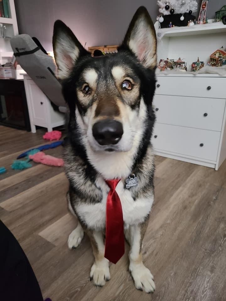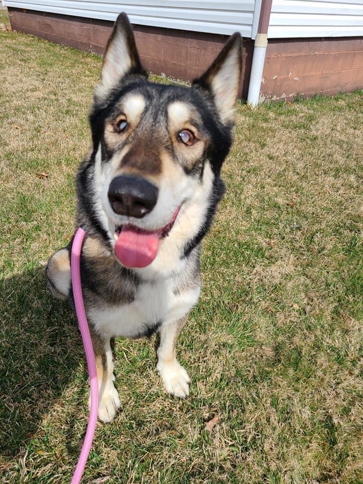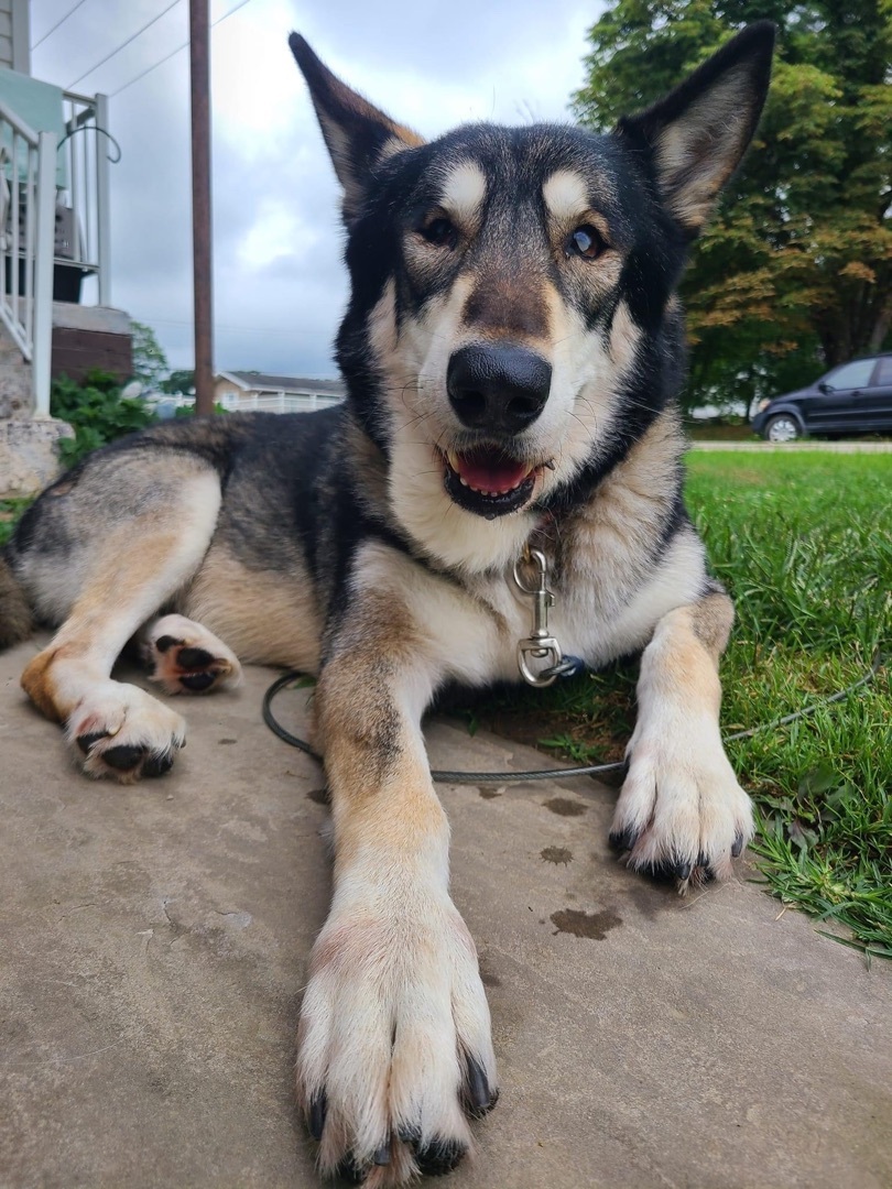 • Name: Bash (Bish Bash) • Male or female? Neutered male • Approximate Age: 4 years old • Breed: alaskan malamute mix • Weight: 90 to 100 pounds • Any impairments: blind, anxiety • Potty trained? Really close • Crate trained? Yes • Good with other dogs? Med sized dogs and up (50 pounds and up) • Good with cats? NO • Good with kids? yes • Commands known: sit, come, steps, waits in a sit for food. • Needs fenced in yard? No, but he would enjoy one to hang out outside • Needs another dog in the home? Not a need but he does enjoy the company • Location: Pittsburgh pa • Energy level (high/med/low)? Med • Bio: Bash is a 4 year old blind alaskan malamute mix. He is a soft boy who wants nothing more then to lay at your feet. He is on anxiety meds which will need keept up with and very minimal manitance on his spinning tendency. He enjoys sitting outside on the porch catching some rays, and enjoying a good nap. He maps out his environment very quickly, steps, baby gates you name it he will figure out where it is. He loves to play with his toys and just be with his family hanging out or going for adventures. Bash is located right outside of Pittsburgh PA. If you are interested in adopting this dog, please review our adoption policies and apply online at [www.speakfortheunspoken.com/adopt](http://www.speakfortheunspoken.com/adopt). Visit [www.speakfortheunspoken.com](http://www.speakfortheunspoken.com/) will give you more information about our rescue. ***PLEASE READ*** WE DO NOT RESPOND TO PETFINDER OR EMAIL INQUIRIES. Please fill out an application on our website if you are interested in adopting this dog. We will only set up a meeting with the dog once you have an approved adoption application. We actively manage our dogs on Petfinder.