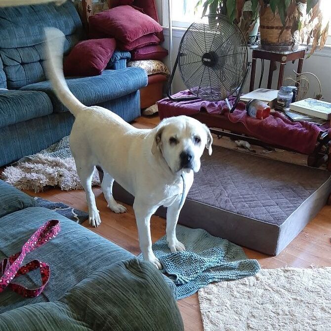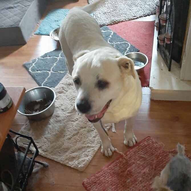 Meet our Senior Hank Available for Adoption Maiden, North Carolina Hank is a 10 yr old American Bulldog senior mix weighing 95 lbs. He is dog selective but does good with little dogs. He does not like cats. He is good with people. He is looking for a family or individual to be with. He has a funny personality. Be sure to watch his video. And the picture of him standing outside with the door open has a funny story. He was mad at his foster and wouldnt come in! Lol! Hes a character. A big one baby!