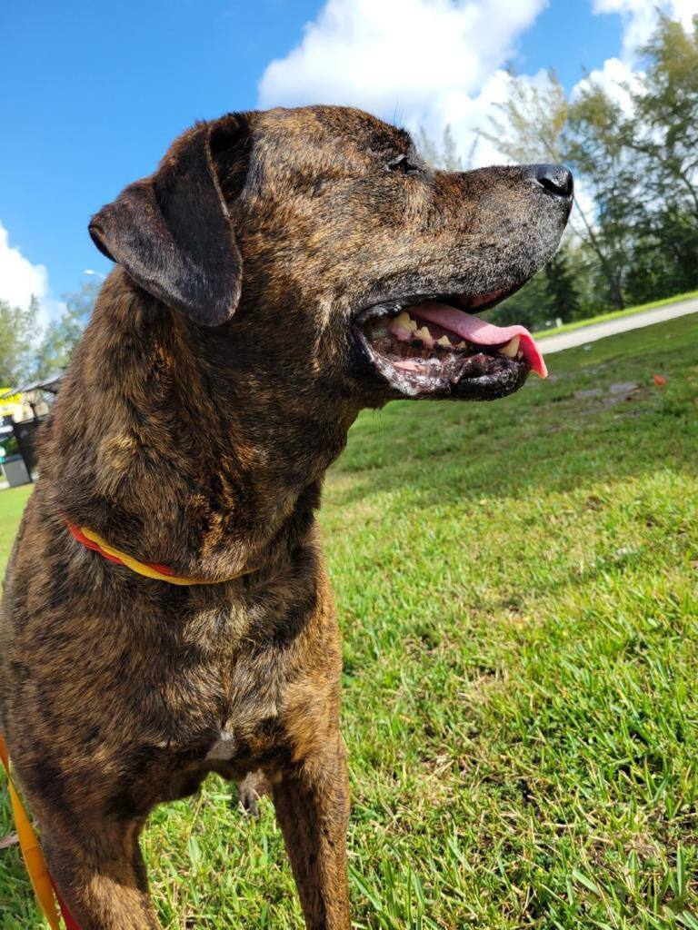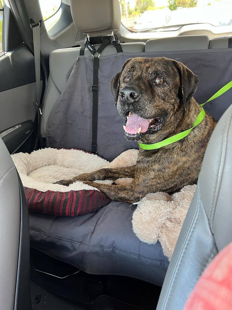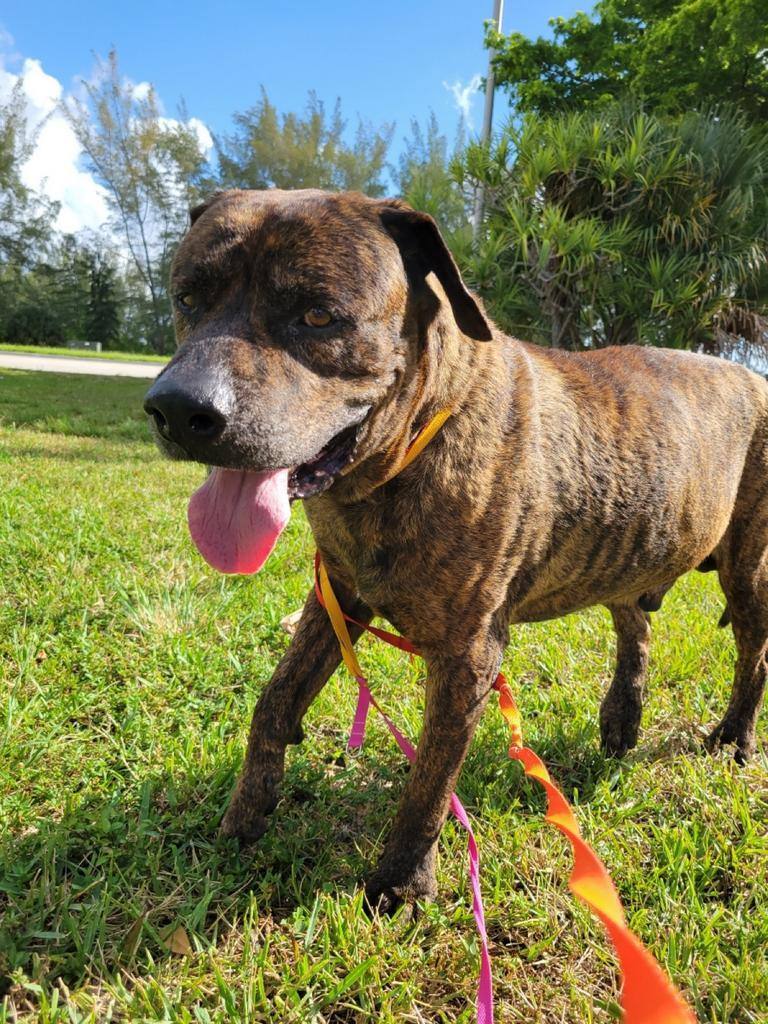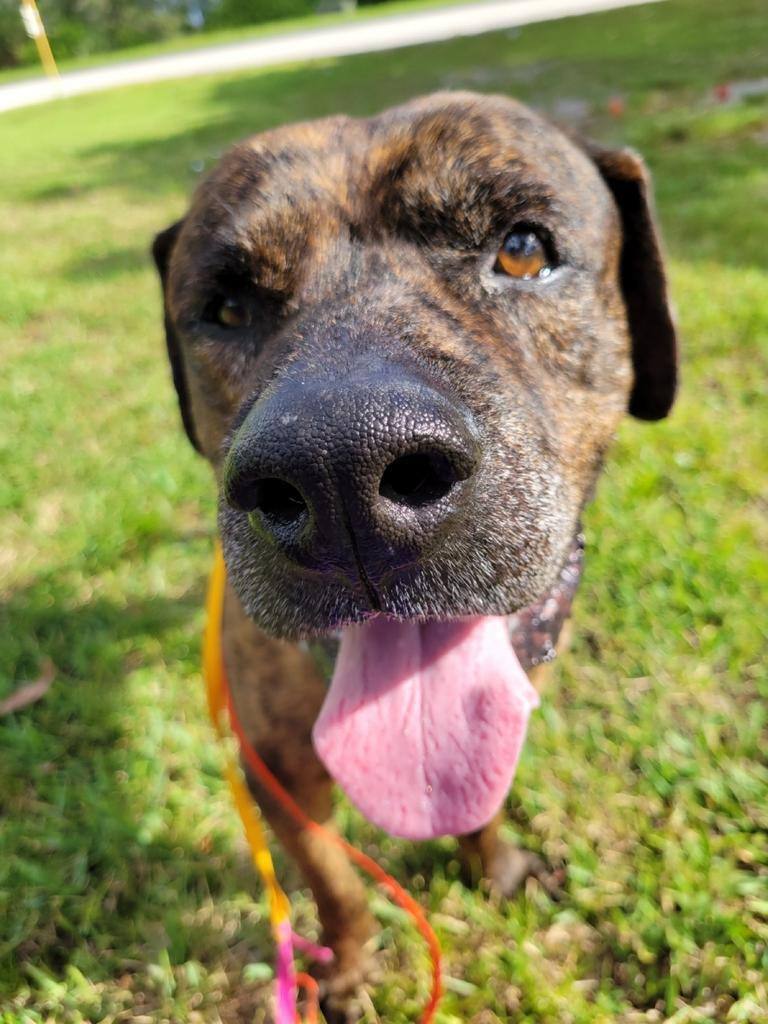 When they say love has no limits, well this certainly is the case with this strapping fellow, Helix....108 pounds of pure adoration with room to grow, fur sure? Though this handsome guy had not been shown love nor compassion and was abandoned in a high kill shelter in Florida with a horrific leg injury, this did not deter him. His situation was ominous however, Helixs loving personality and determination to overcome a bleak ever after made for a promising outcome. Sufferin, not only in physical pain but languishing alone and bewildered, Helix gave kisses and welcomed hugs by all that met him. Large dogs coupled with injuries have little to no chance of survival down South however he was afforded the chance for a new life with the opportunity to know love and yes, romp and play as all doggies should. He was the perfect, respectful and affectionate patient in both vet hospitals and was said to be a lover by everyone who made his acquaintance. Helix is still a young guy, approximately 2-4 years young and quite the social/polite gentleman. After three Orthopedic consultations, Helix has been scheduled to have surgery Tuesday and after some rest/relaxation/rehabilitation, he will be runnin and frolicking in no time. In the interim, he will need a quiet, comfy, caring place to rest his body and let his leg heal. We are asking for someone to open their heart and home so Helix can heal and go on to find his furever home/person/family to love. Perhaps you too will fall under his spell and want to make him your canine companion.? Well, first things first. Lets get him the accommodations he needs and deserves. If you would be so kind and be a part of Helixs happily ever after, please contact us for more details. He will most certainly make you smile and warm your heart as you get lost in his big, beautiful soulful brown eyes while you caress his soft brindle coat as he leans into you. Woof and wags from Helix to you!