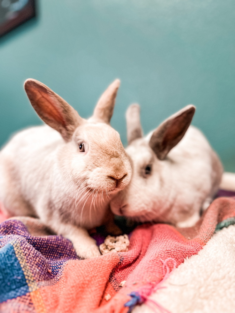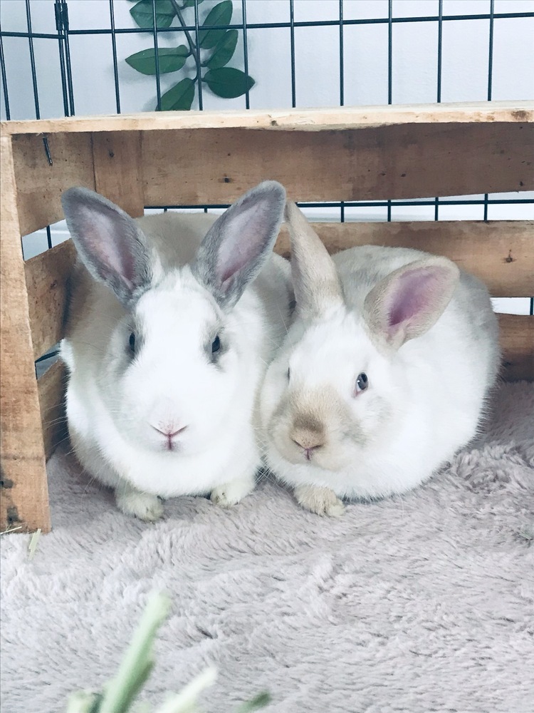 Gigi the bunny came into our care from an unfortunate situation, where she was running loose in a neighborhood with two other bunnies. Shortly thereafter she gave birth to a beautiful white baby bunny whom we named Cotton, her son. Sometimes moms and their sons have a special bond and these two are no different. As Cotton is an only bunny he is very spoiled by his mama! The two are a bonded pair and love to spend their time together. Cotton is very sweet and affectionate, as is Gigi. Cotton enjoys exploring and binkying in the morning, and both bunnies enjoy Romaine lettuce, basil, dill, parsley and cilantro. These two quiet and easygoing bunnies would love to find a forever home where they can enjoy each others company, and that of their devoted humans! We adopt to indoor homes only! If you are interested in adopting a bunny from Orlando Rabbit Care and Adoptions or would like more information on rabbit care, please visit our website at: http://www.orlandorabbit.org. The first step to our adoption process is to complete an adoption application, which can be found here: https://petstablished.com/adoption_form/30180/generic . Then one of our volunteers will reach out to you via email to schedule a time to speak with you. If you dont see the email in a day or two, please check your spam folder! Our Adoption Fee/Donation for a single rabbit is $90, while a pair is $150. This helps to offset the cost of having the rabbits altered, microchipped and vaccinated, as well as any medical care that may have been required.