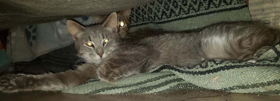 Grayson came to us from a different county with no animal rescue services. He was rescued from a home where the neighbors were harming the cats. He was rescued along with his siblings Bedros and Bengal. They are safe now. All three are very sweet; when they first arrived, they were terrified. Grayson hid in a wall between the paneling and wall while Bengal hid in a drawer. Both are finally starting to come out of their shells, the perfect home for Grayson will have a patient person who can allow transition in his own time.