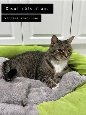 Moi cest M. Choui! Je suis un mâle de 7 ans vacciné et stérilisé. Je suis très calme, donc jai besoin dune famille tranquille. De plus, j’adore recevoir et donner des câlins. J’aimerais me trouver une nouvelle famille pour la vie ! Je cherche ma famille pour la VIE ! Pour plus dinformations à mon sujet, appelez le 450-632-0011 ou venez nous voir au Pattes et Griffes de Candiac !