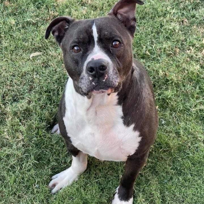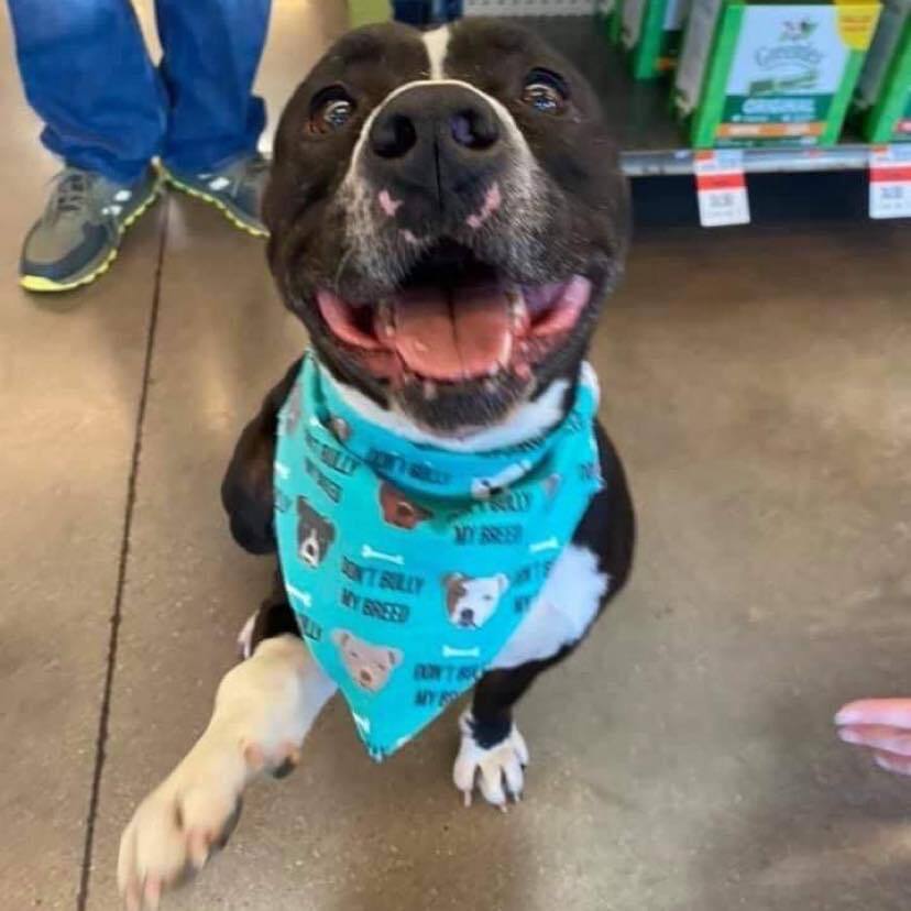 ADOPTABLE ARTEMIS! Looking for a dog that loves to be snuggled up with you? Artemis is your guy! This short & squatty pittie/mix is for you! He loves all people, including kiddos, loves a good bone, loves a game of fetch, and is house-trained and crate-trained. He currently lives with large and small dogs and does well with them, but needs slow and proper introductions. His foster family is working on commands and he is doing very well with them. He is VERY treat motivated. He will need a family that will continue to work with him on his leash training. Apply online today to adopt Artemis - https://form.jotform.com/81144515117146