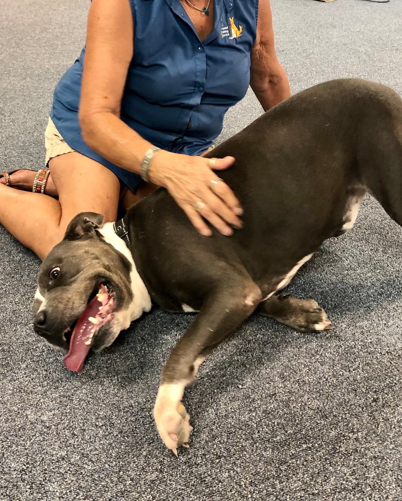 (Dallas, Texas) This is King, and its what Angie (an 81-year-old, small lady with an iron-willed kind heart) does every day! She packs food, medicine, and other needed materials and goes to economically destitute areas in West Dallas to care for the neglected dogs and cats. Along the way, she rescues the ones in the worst situation. Angies been feeding King and was the only human visiting him. We couldnt hide how heartbroken we were seeing King carrying his bowl and panting alone in the heat. Toward the end of this brutal summer, Angie rescued King (4 y) living on an abandoned lot in a cage from the heat, dirt, boredom, and loneliness. Without a foster, we have to board King with a trainer, and he now loves loves the attention (& treats, of course) he receives during every training session. Also, we think this guy really LOVES WOMEN. The way he smiles and has sparkles in his eyes when a female volunteer first went to visit him, WOW! We would certainly love for King to have a chance to live in a house. Please let us know if you would like to foster this woman-loving guy. Thank you so much.