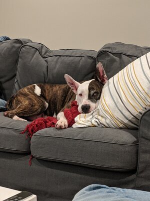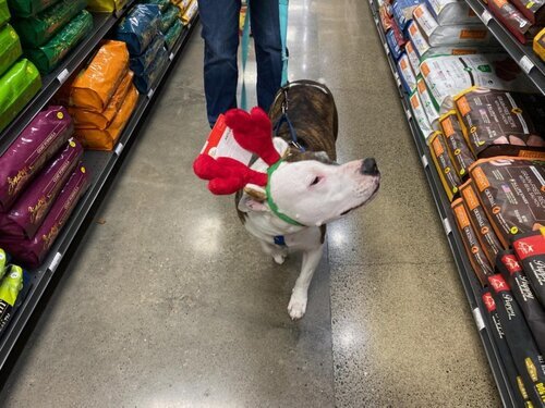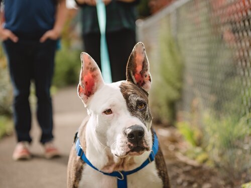 Hi there, my name’s Orion, and I’m so happy you’re here! I’m very people-focused and love getting attention, pets, and snuggles from, well, everyone! I’m not picky about my humans and just love them all. I’m a mellow dog, but don’t let that fool you, I still really enjoy being active. I love going for walks and getting to smell all the good smells in the neighborhood. I’m also very into games of tug-o-war and shredding stuffies. I’m housebroken and I know ‘sit’, ‘drop it’, and ‘let’s go’. I am also a very goofy dog and I love rolling around on my back, hiding under my dog bed, and counting cars when I’m going for a car ride. I got into some trouble in my old house due to my very strong prey drive, so I’ll need to go to a house with no small animals, and I need an adopter who is committed to keeping me secure so I don’t get into any more trouble. I need to be an only dog, but don’t worry, I have so much love to give. I do have some separation anxiety, so I need someone who will be patient with me and help me work through that. Can you give me a nice retirement home with lots of cozy places to snooze and plenty of snuggles? 8 years old-70lbs. My adoption fee is $180 and includes microchip, neuter, reduced-cost training class, 1 month pet health insurance, free veterinary exam, leash/collar, food sample, toy & treat packet.