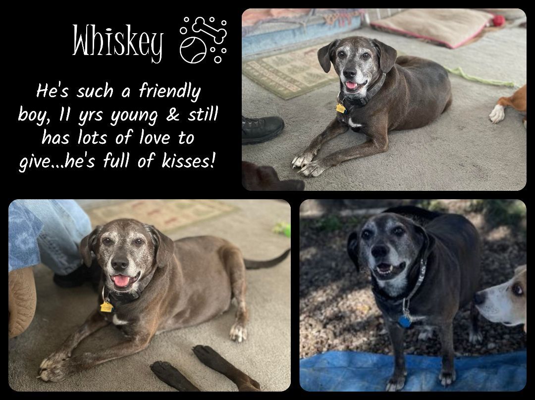 Meet Whiskey! Hes a lumpy friendly boy! :) Hes approx. 10 yrs old, neutered, microchipped, heart worm tested, current on shots and due to his age has had a blood panel and an X-ray done since he has so many fatty lumps. He is a bit overweight so weve increased his exercise and are switching his food, so hoping thatll help him drop a few pounds! :) Whiskey is a smiley sweet boy, he came into the rescue with his fursister Denali, shes approx. 9 yrs old and such a sweet girl, very calm and affectionate, both of these furkids give lots of kisses, they really love their people. Denali is fixed, chipped, heartworm tested, current on shots and in great health for her age, we ran a blood panel on her too just to make sure shes a healthy girl when goes to her new home! Whiskey and Denali have been together most of their lives, so were looking to adopt them out together. Whiskey does have some health issues (chest/lung nodules), so sadly he may not have much time left but he has so much love to give!! If interesting in adopting Whiskey and Denali, please visit our website at, www.doggonerescue.com, to fill out our adoption application. If you have any questions please dont hesitate to contact us, we look forward to hearing from you!