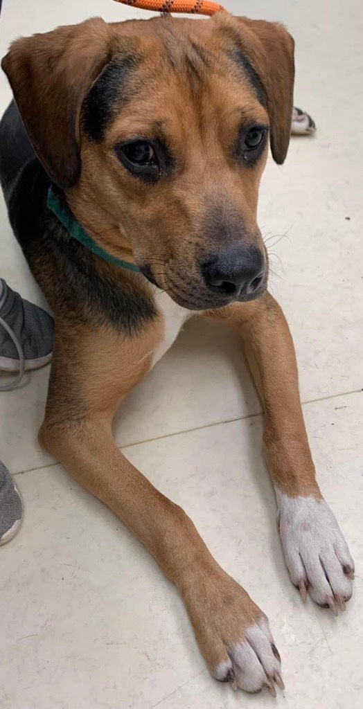 CJ is full of life and love. He is a sweet, affectionate young dog who gets along well with other dogs and everyone he meets. He is an ACTIVE guy that will need a home willing to give him lots of exercise and work with him on discipline and manners. He doesnt do anything ""bad"", but boy oh boy, is he busy! So, if youre looking for a jogging/hiking/long-distance walking partner, hed love to accompany you anywhere you go! CJ is a beagle mix, about 50 pounds, and one year old. _________________________________________________________________________ Adoption Donation for CJ is $ 425.00 WANT TO MEET CJ The first step would be for you to go to our website at www.aear.org and then to the ""Adopting a Pet"" page to read about our Adoption Process which will answer many of your questions and then to fill out an Adoption Application. Also, please visit our very active Facebook Page for updates on CJ and our other adoptable pets with AEAR - www.facebook.com/aear.org