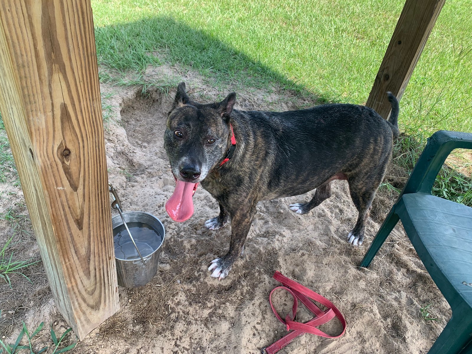 Toby has been returned to us after being adopted from WAG, about 5 years ago. Since that time, he was in a loving home until he lost his human parents to illness and death. He is a large Black Mouthed Cur mixed breed and a bit overweight at this time at about 91 lbs. Toby had been very lonely coming back to the rescue after losing his family. He was very confused and stressed in the kennel environment. Thankfully, Toby has since been fostered into a wonderful home while we search for the perfect forever home for him. His foster home has other dogs and various other livestock and animals. His foster Mom reports that Toby enjoys being in the house a lot probably due to the heat outside. She says that he is still a bit timid with the other dogs and somewhat scared of the donkeys, but is a very good dog. He is learning to sit, stay, leave it and go in the crate. He also walks very nicely on a leash. While we had him at the rescue, he was a very affectionate, sweet boy and extremely polite. Toby will make the right family, a wonderful companion. He has been neutered, is heartworm negative, microchipped and a pretty healthy boy! Toby is looking for his forever home now. He would do well with older adults as Toby is a pretty low key dog and really just wants to be loved and to feel safe and secure. If interested in meeting Toby, please call us at 352-528-9888 to set up an appointment. We also offer our "Foster to Adopt" program. This program allows for someone interested in adopting a dog, to foster that dog for a period of time first, in order to see if the match is a good one. If the fostering period goes well, then the adoption can move forward.