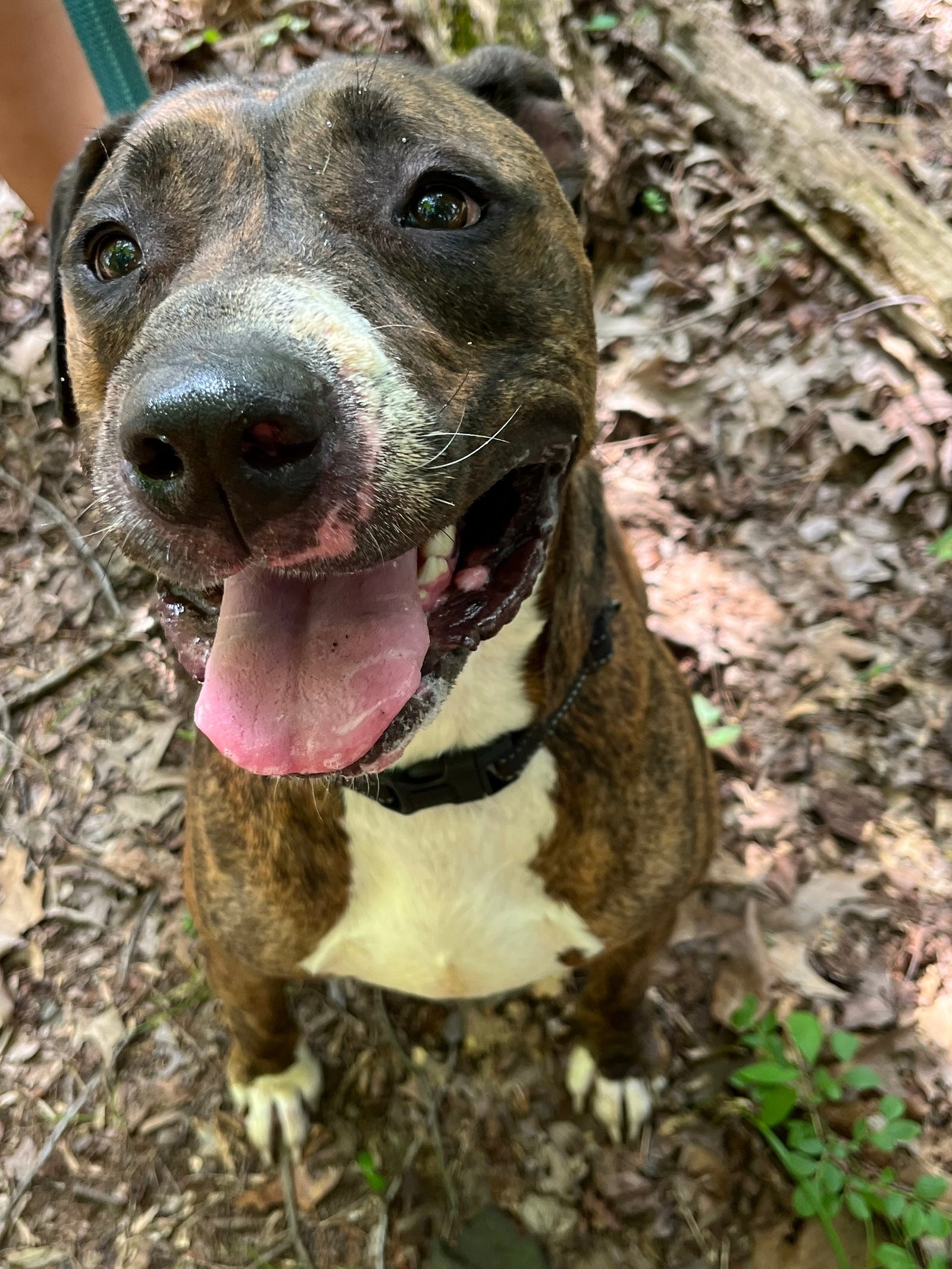 MEET OWEN! This gentle and loving boy is a bull terrier/plott hound mix, is 5 years old, and weighs in at a healthy 84 lbs. Initially adopted with our shelter partnership 4 years ago, he was sadly returned to the shelter of origin because the toddler was highly allergic to him. While we dont know fully why Owen wasnt surrendered directly to us, his time in the shelter was short, and he was given all of his shots. Owen also has allergies. He is highly allergic to all poultry, and his fur will come out in clumps if he is given any food with chicken, duck, turkey, or their eggs. He is on a diet of fish and potato and is enjoying a soft and lush coat. Owen loves children. Despite his size, he was an absolute gentle giant with the baby of the house. He knows all of his commands, but he will pull when he gets ready for a walkie. He loves to be outside sniffing all the things! Owen has done well with male and female dogs his size and smaller. Owen really needs to be back in a home. He is a nice, nice boy who would be as happy laying next to you as he would going out on an adventure. He is great in the car and is very forgiving of his chauffeurs off key singing. Owens adoption donation fee is $350 which includes spay/neuter, routine vetting and a microchip. You can apply for Owen by filling out our online application, which is found on our website www.tarashouse.net or www.tarashouse.org. Please email us at info@tarashouse.net with any questions.