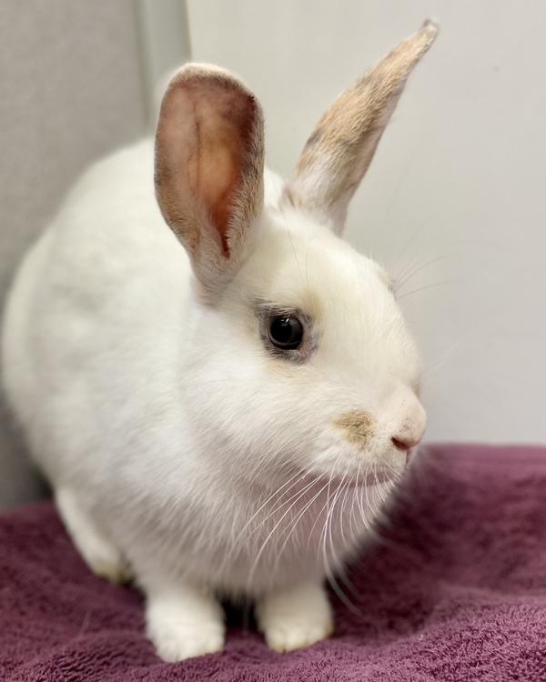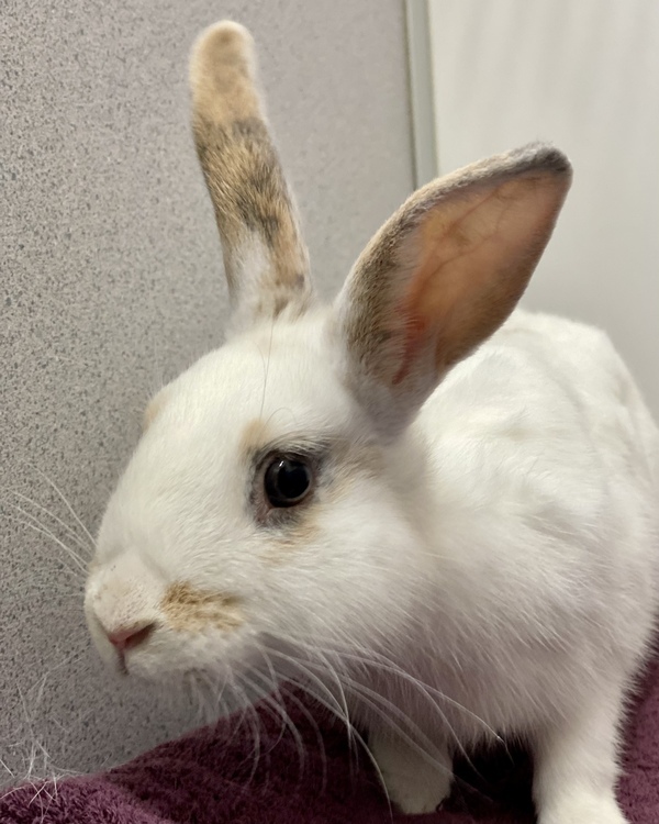 Spot is currently in a foster home and NOT at the shelter. To make an appointment to meet Spot please call our Adoption desk at 415.506.6225Spot was a surprise bunny. His family had several rabbits and well ...you know what happens when rabbits arent spayed or neutered! Now Spot is in a foster home living the good life and patiently waiting for his forever home. Heres what his foster "mom" says about him: Spot is very curious, friendly, outgoing, likes to play with toys and have space to do Bunny Binkys. I can hear him playing with his toys. Its so cute to hear him rattle the bells on them and move them around his area. Hell for sure need a variety of toys. Rabbits enjoy when you mix toys up so every few months I rotate them around. When I go in his area to play with him, he likes to give me the toy. Its pretty cute. Like all rabbits he uses his mouth/teeth to check stuff out. Its their way of tasting. This could be scary for young kids so he might be better with older children that understand this normal behavior. (He doesnt bite its just a nip. Distract him with a toy or veggie.) He likes to run over to greet me when I come in the room to say hi to him. He does not like to be picked-up or held like most rabbits. But he does enjoy being petted. I like to go sit in his enclosure and he runs around me, stops, eats some of his hay and then I pet him. He has done well with my dogs and cat. They say "hi" to each other through the x-pen bars. And sometimes they will run around together on either sides of the pen. Its my own private Indy 500! He will make a great companion to someone who wants fun company and to just to let Spot be.Marin Humane rabbits are companion house rabbits. They live indoors only and cage free- living in a pen or free-roam in the home. This lets them live much longer, happier lives! Indoor rabbits can live 12+ years and require a lot of time and commitment. In return they offer years of love and companionship! Primary Color: White Secondary Color: Tri Color Weight: 4.8lbs Age: 0yrs 7mths 3wks Animal has been Neutered