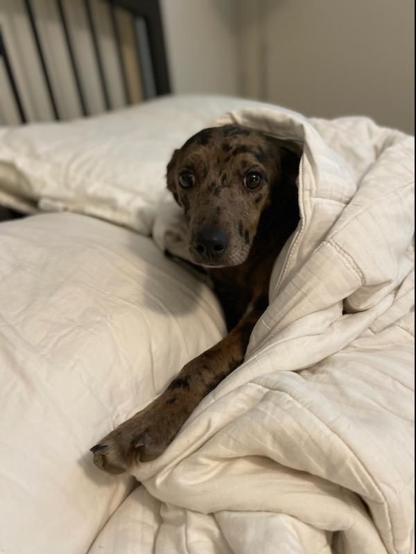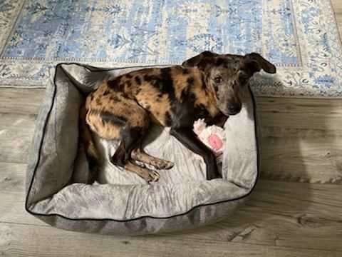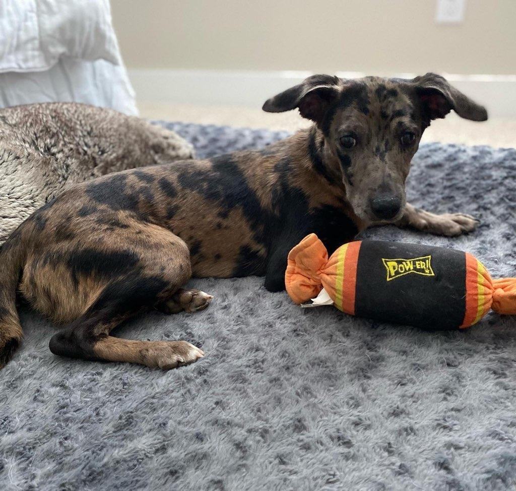 Calder is the most entertaining puppy we’ve ever had the pleasure of fostering. From his goofy facial expressions to the way he interacts with his toys will have you laughing. All this puppy wants to do is love. He is very people oriented and especially loves kids, as they can keep up with his high energy levels. He is very very tenacious and brave, which does get him into trouble sometimes. He is working on not chewing things he isn’t supposed to, potty training, and calmly interacting with other dogs. Calder hates car rides and baths, but loves balls and cuddles. He likes kayak rides on the water and is starting to enjoy some swimming. He has sit and come down pat and we are working on other basic commands. Calder was diagnosed with Swimmers Syndrome, but that definitely does not keep him down. When he was rescued at 4 weeks old he was completely unable to walk. He immediately started treatment with hobbling his front legs and easing into physical therapy. He worked for 5 weeks at home with building mobility and strength. Around 3-4 months old he started structured physical therapy once a week to get him to help push him farther and to get lot of treats from the physical therapy team. He’s made great strides in walking on slippery surfaces, but still struggles with going up large flights of stairs. He is a very special puppy and will need a loving, understanding family that can take the time to work around his needs. Apply: www.blackjackrescue.org Email questions: Rachel@blackjackrescue.org