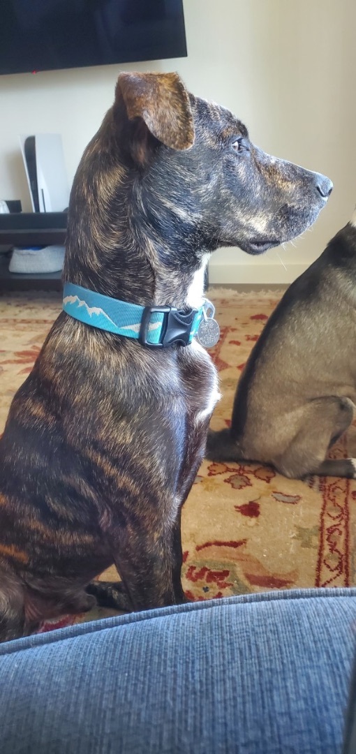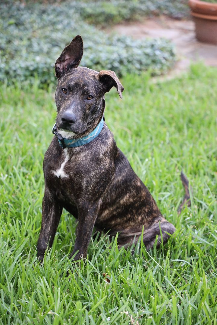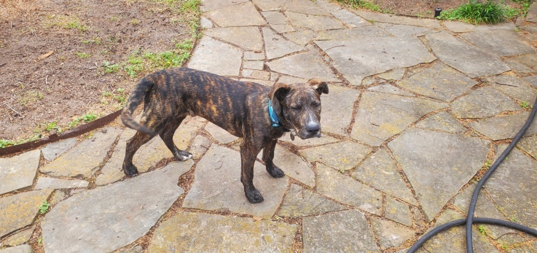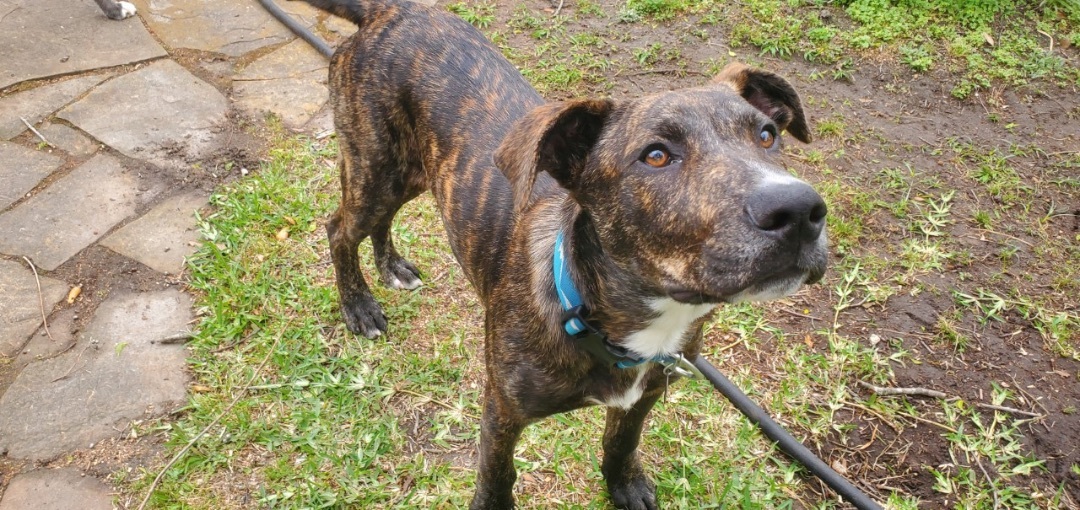 Yali was recently abandoned, and unfortunately, we werent able to reunite him with his original owners. He is quite friendly and came right up to us, happy to have someone take him in. Yali is a very curious 8-month-old brindle boxer-lab mix, currently 47 pounds, but will certainly get larger (our best guess is eventually 55-60 pounds) Yali has tons of energy and loves to play with our other dog, at times a bit rough, but our other dog is okay with that. He is house trained, crate trained, and doggy-door trained, and weve been working on basic commands like "sit" and "down" (yes Yali likes to jump up on counters, so dont leave any food out within reach!). Yali is not aggressive towards other dogs or humans, but as a teething puppy, he likes to chew on things and can be a bit nippy when he plays with both other dogs and humans. Yali needs a home where he can receive proper obedience training to ensure he matures into a well-behaved dog, and not an adult mischievous maker. Medically Yali has no serious issues, just a minor skin infection that is currently being treated successfully. Yali will need to be neutered soon. Yali is located in Texas but can be adopted to Canada or out of state. If interested in Yali please visit our website www.bravebullyrescue.org and fill out our adoption application.