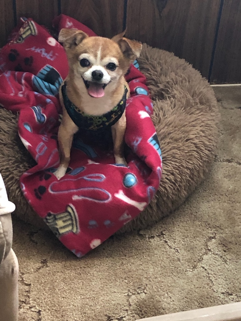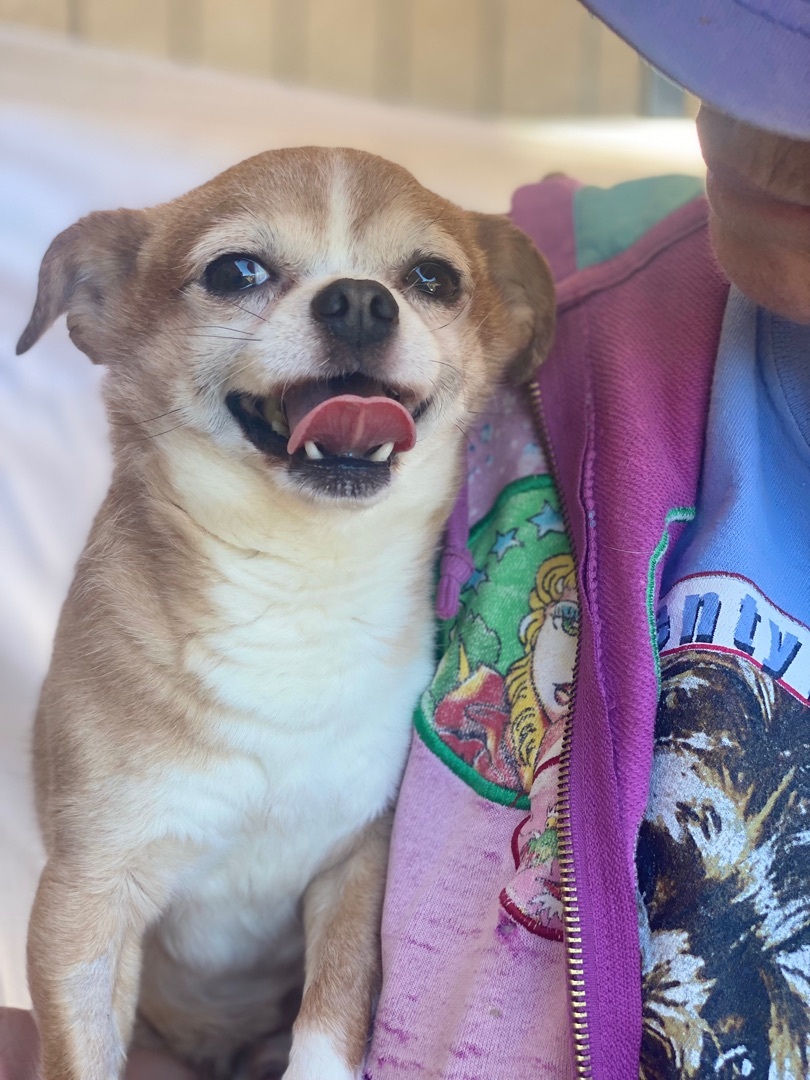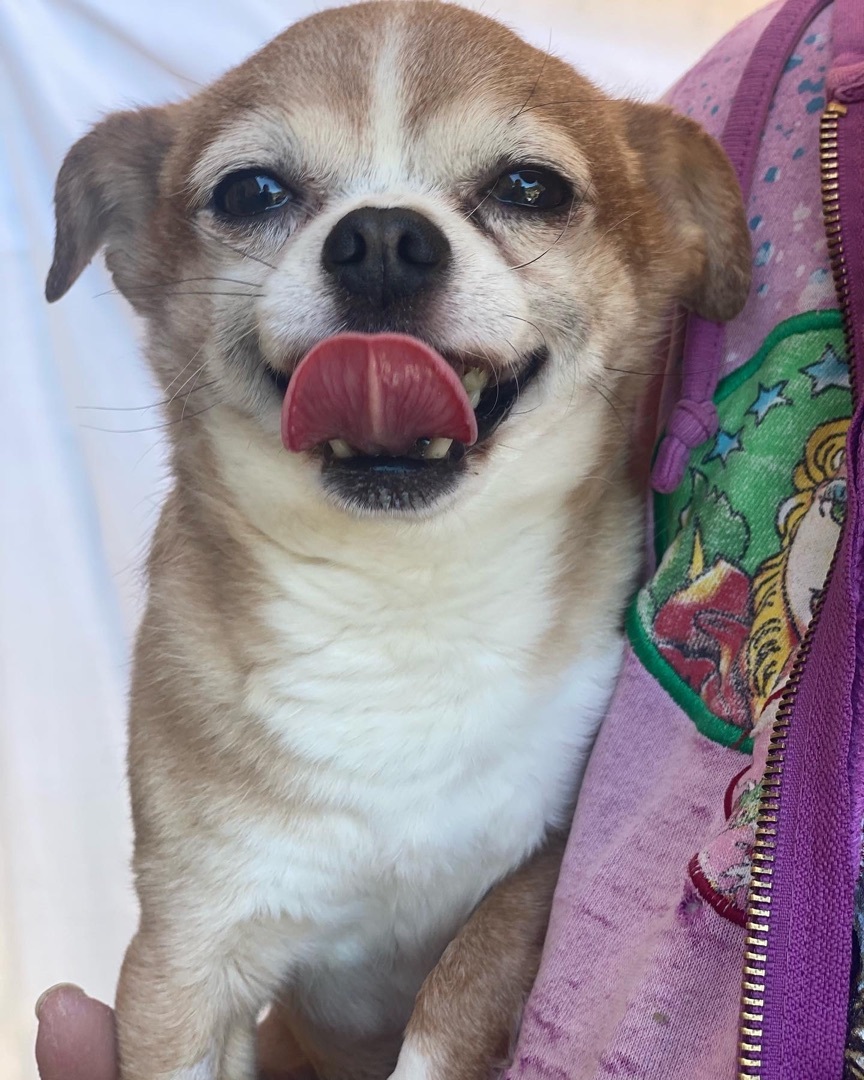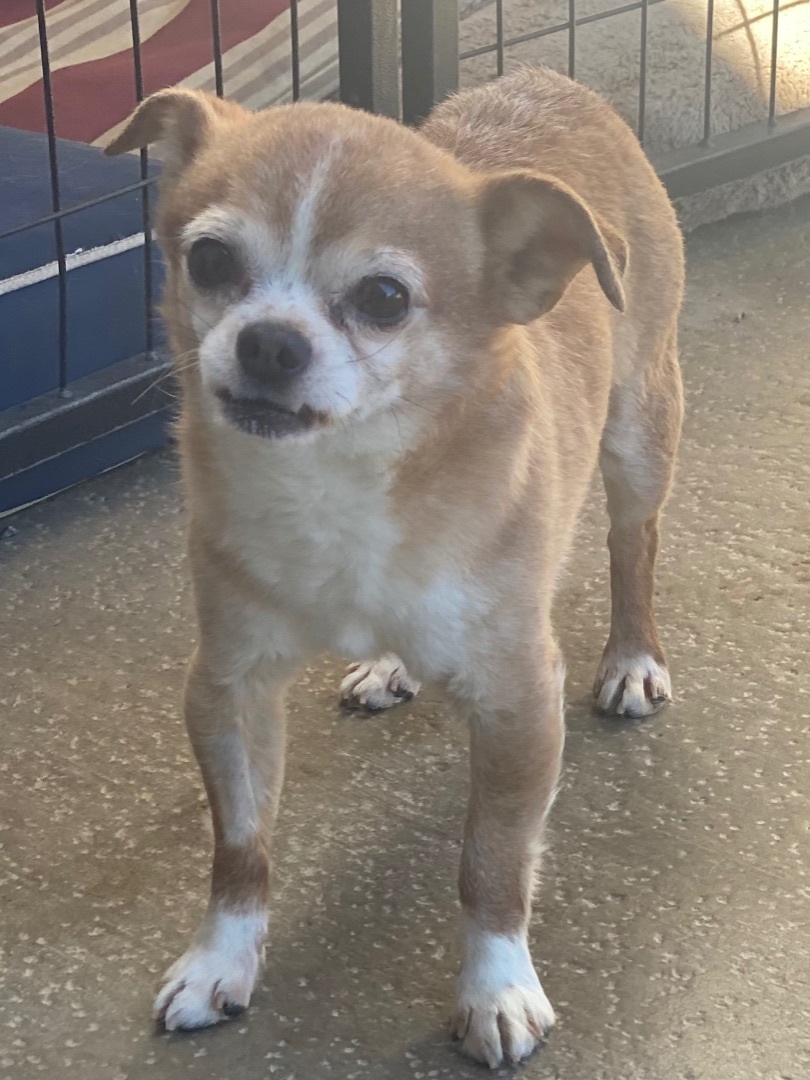 This adorable 7 year old Chug recently lost his home because his person was moved into assisted living. He is barely 6 lbs and just full of love and energy. He runs all over our play yard with Patty and Polly so we think he would love a home with another playful small dog. If spirited littles steal your heart he just might be the one for you. You can see more of him on our Instagram page @thebrittanyfoundation. Because we require visits here to our rescue and in person home checks, adoptions are limited to the Los Angeles, CA area.