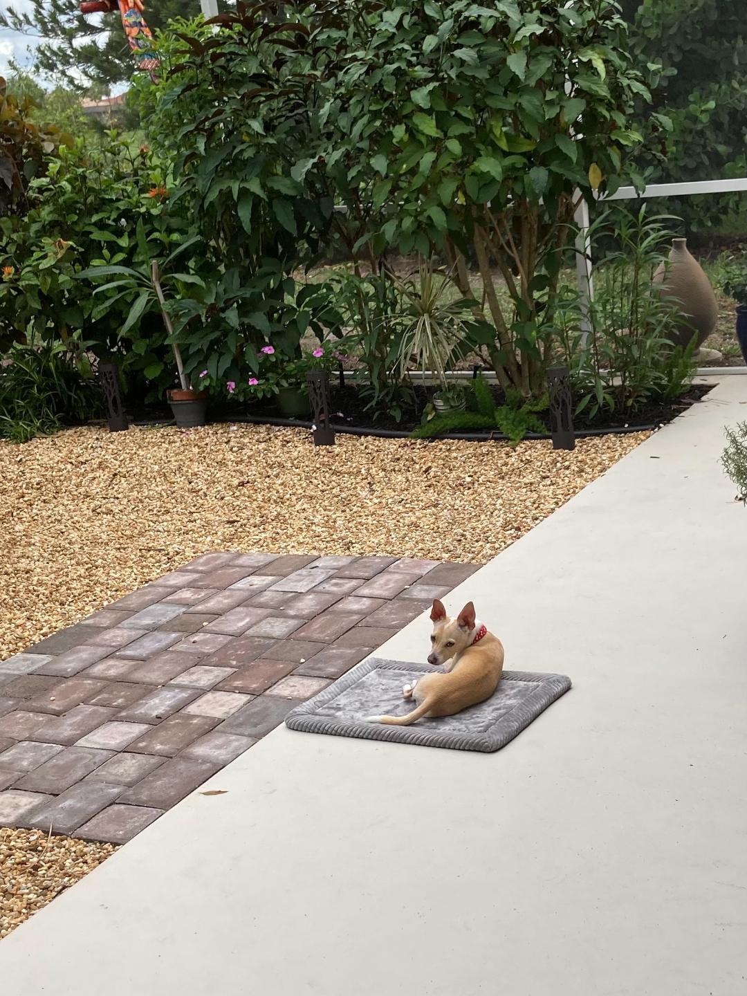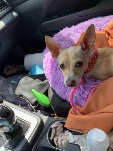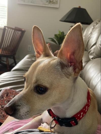 Jake is a sweet, cuddly nine pound male Chihuahua. He’s approximately one year old and learns quickly, but will need lots of time and patience for training. Untested with small children or cats. Will bite strangers who approach and reach out. Barks, but is learning the no barking command. Partially housebroken. He has learned to use the doggie door and loves to be outside on the screened lanai.