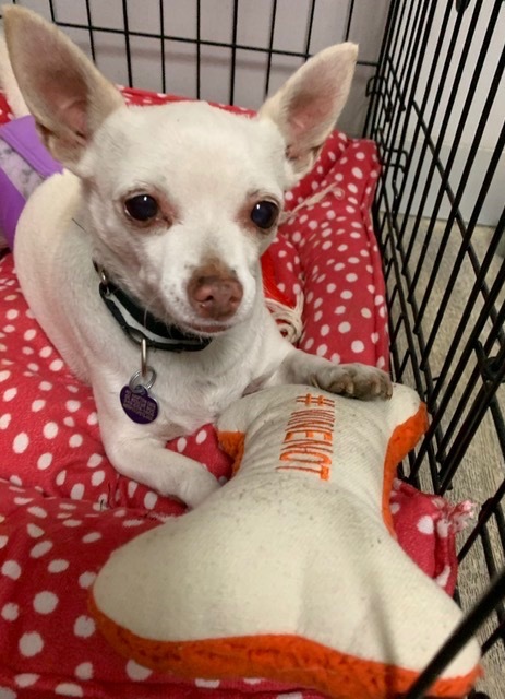 TJ the Toy Hoarder is an 8 pound, 5 year old neutered male Chihuahua who came to us from the Orange County shelter, where he arrived as a scared stray pup from the streets of Lake Forest. TJ likes his room and at the center, and will warm up to you, sit in your lap, and give you kisses if you go slowly. He loves his toys - especially squeaky ones. TJ doesnt like most dogs or children, but he loves walks. Hed be happy as an only dog with lots of attention...and toys. TJ is on a special diet to prevent crystals in his urine. He will need to remain on that diet. If youre interested in meeting TJ, go to adoptocpets.org/adopt, and download, complete, and email us your application.