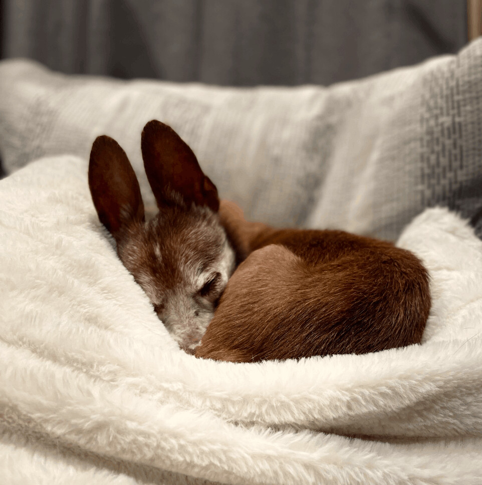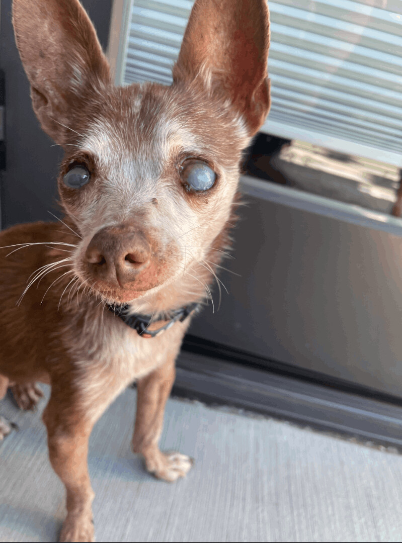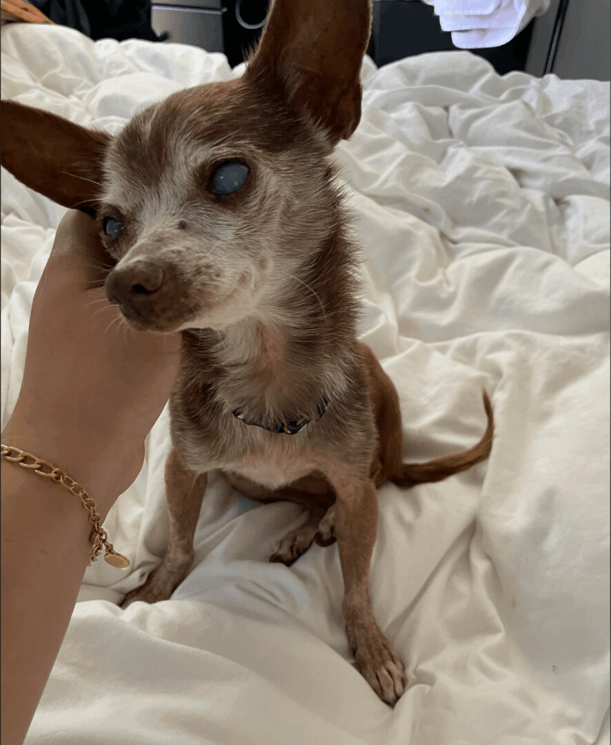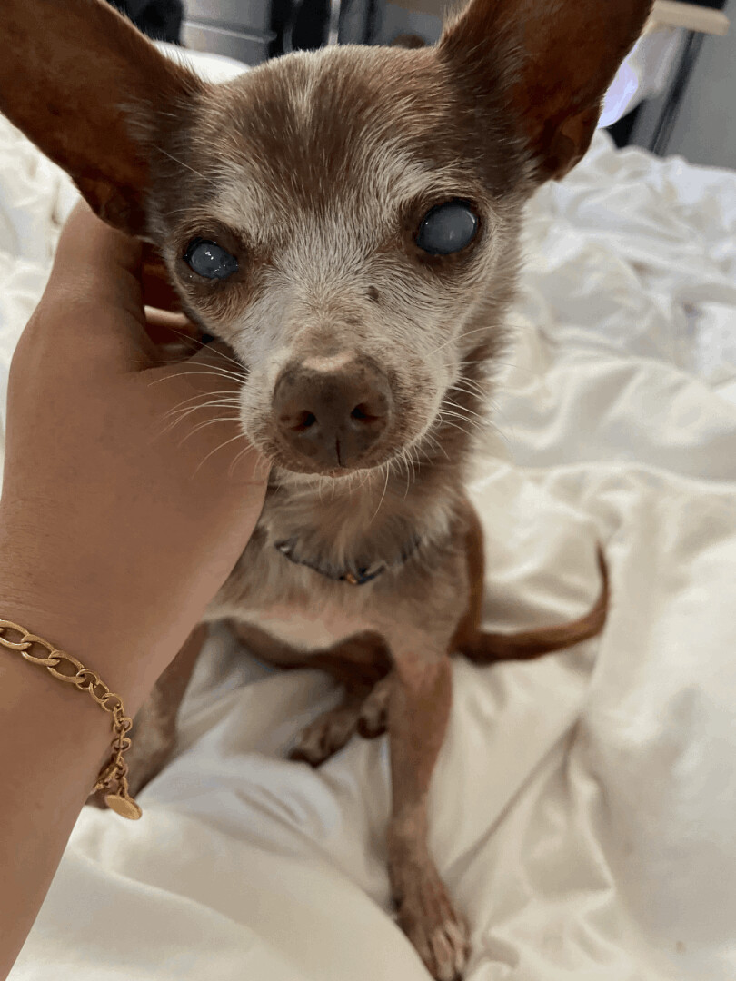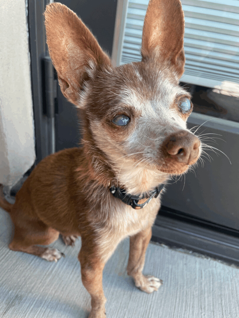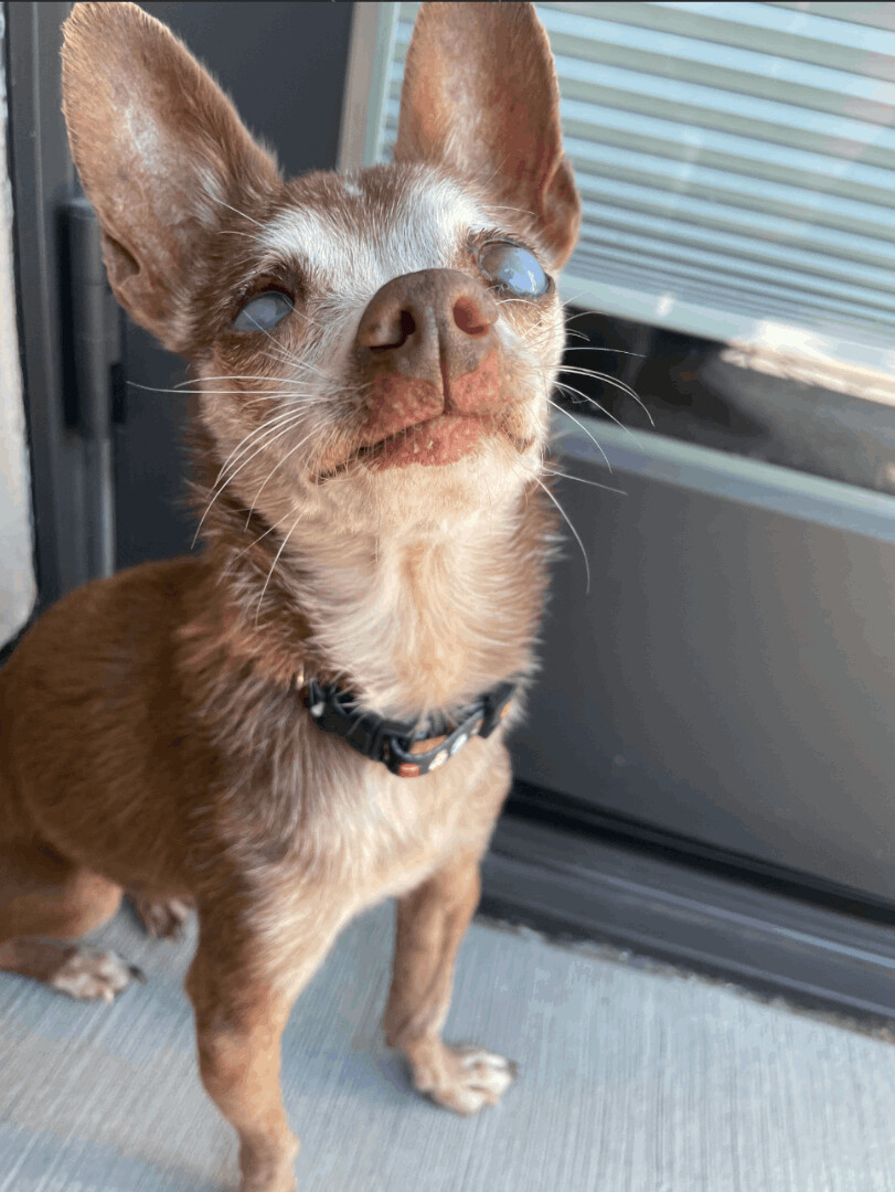 Mic check 1,2…….Can we give it up for Tupac? This senior gentleman has put his music touring days behind him. Now he enjoys napping on the couch next to you. He will follow you around the house or sit in his pet-carrier and run errands with you. His eyes might be misleadingly cloudy but he can still see! Tupac is staying with two fans (2 other senior small dogs). If you’re looking to give a calm, cuddly senior dog the best golden years, apply today! If you are interested in meeting please fill out an application at our website www.gobeyondrescue.org/adopt. Our adoption fee is $450 and includes spay/neuter, microchipping and up to date vaccines. We adopt within 200 miles of San Francisco.