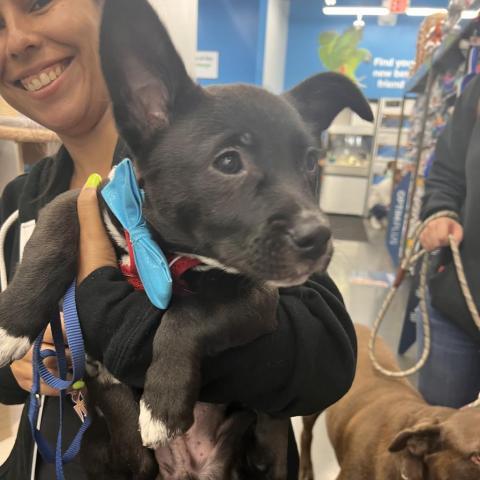 My name is Big Dave! They think I am a Chihuahua Terrier mix, but we arent 100% sure. I weigh about 12lbs at 4 months old. I think the folks at TnT were trying to be funny by naming be Big Dave, but little did they know, Ive got a MASSIVE personality to make up for my tiny body! I am working on potty training and crate training, and doing well! My days are spent eating, sleeping, chewing, getting love, and PLAYING!! I just LOVE to play!! Sometimes I can play a little too hard, and my baby teeth, also known as my baby "shark teeth" can sometimes hurt a little bit, but just tell me gentle, and Ill play softer! I will need a home that will spend time with me working on training, and helping me get my energy out! I would love an active family that will play with me and introduce me to new people and other dogs to play with! I am very good with other dogs and everyone I meet! Big Daves adoption fee is $450.