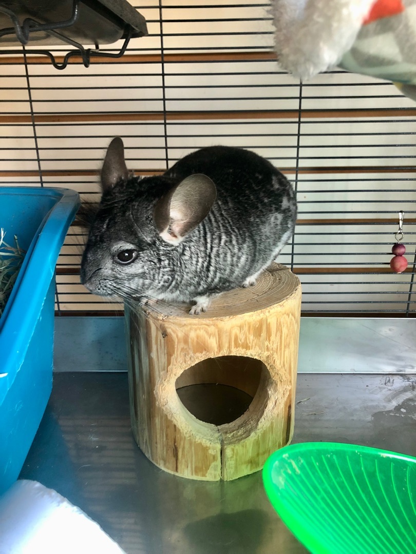 This handsome little guy recently joined us after the landlord told his previous family that he wasnt allowed to stay. He is quite friendly so far! More info coming soon as we get to know him better! Chinchillas make fun and entertaining pets for the right family, but they do need some special considerations. Chinchillas live 15-20 years, are strongly nocturnal and need large multi-level vertical cages. They are generally not cuddly, but tolerate pets and scratches for short periods. They are SUPER fast and when theyve had enough will bounce off the walls to play and avoid capture :) They have specialized diets and require dust baths to keep their dense coats velvety soft!