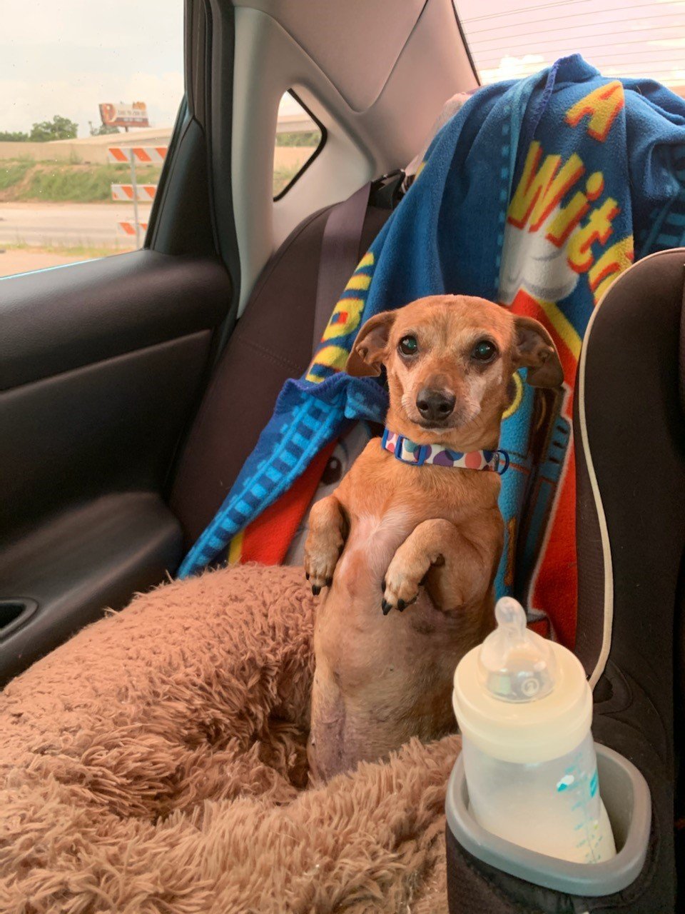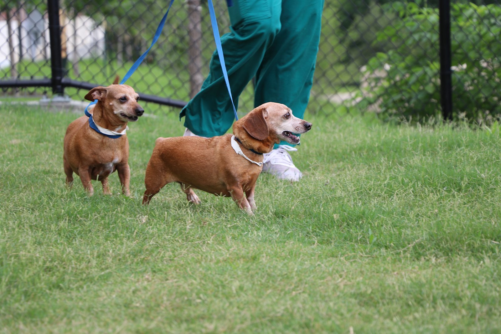 Heartworm Prevention is given on the 12th of each month Squeak is estimated to be 15 years old, but I do not believe it. She and Scooter were surrendered together, but are not overly bonded. Squeak is a red smooth mini-dachshund mix she weighs about 13 lbs. I would classify her as a low to medium active girl. Squeak loves people and wants to be in physical contact with her person when sitting or in the "big bed". Once in the "Big Bed" she settles quickly and sleeps all night. In foster home she has been very dog and people friendly. Mostly she follow her people around and demands attention. She is kennel trained and goes outside for her toilet. Her only issue is that if not allowed into the "Big Bed" at night she will complain for a few minutes, until she realizes, she will not get her way. She will make a wonderful and loving companion for someone. While she was surrendered with her friend Scooter, she is independent and pursues her own way. Particularly in vying for attention. She could care less where Scooter is or what he is doing.