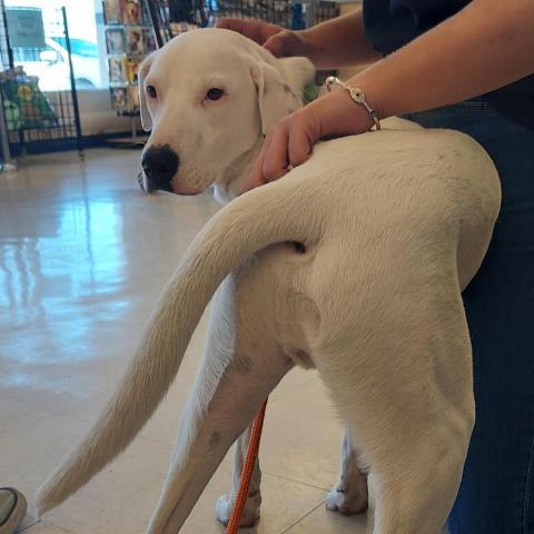 Po, Pooootato, Poboy, Edgar Allen Po Like in that St. Bernard movie, Beethoven, you can call me any name youd like and I wont know the difference. Im deaf!! Despite my special need, I am a very capable and happy pup ready for my furever family. My foster mommy thinks I may be a Dalmatian mix. I am tall and lean, buy only weigh a little over 40lbs. Im a great size for any adventure! I am great on leash and in the car too. I am young and love to play, especially with other dogs. I can come on strong because Im so excited about everything all the time! I cannot hear when a dog doesnt like what Im doing so I would be great with other playful dogs that can be patient with me too. Given my very playful, roughhouse-y nature, cats are a no go for me, unfortunately. Even really small children may catch some paws when I am excited. I am actually very good with children, I am just a jumpy boy and may knock them down. When its not playtime or adventure time, I am the absolute cuddliest guy around. A clean, not so mean, leaning machine! I curl up tight right next to my humans all night if they will let me. I am also good in a crate but do not like to be crated in a room by myself. I cant hear so being able to see the goings on in the house is very important to me. If you leave for work, the store, or even if you just cant keep an eye on me for a while, the crate is a must. I am a curious guy and tend to get into mischief when no one is paying attention to me. I want to always be the center of attention! I would be great in a home with other dogs to play with or with someone to keep me active. As long as I have that outlet, I am an easy guy overall...even with my "disability". I cannot wait to show my furever family the immense amount of love and fun I have to share. Hopefully thats you! Po is enrolled in a specialized training class to become one of those amazing stand out pups! Local adoption fee is $250 (in TX) Out of state adoption fee is $500 (includes transport to your area)