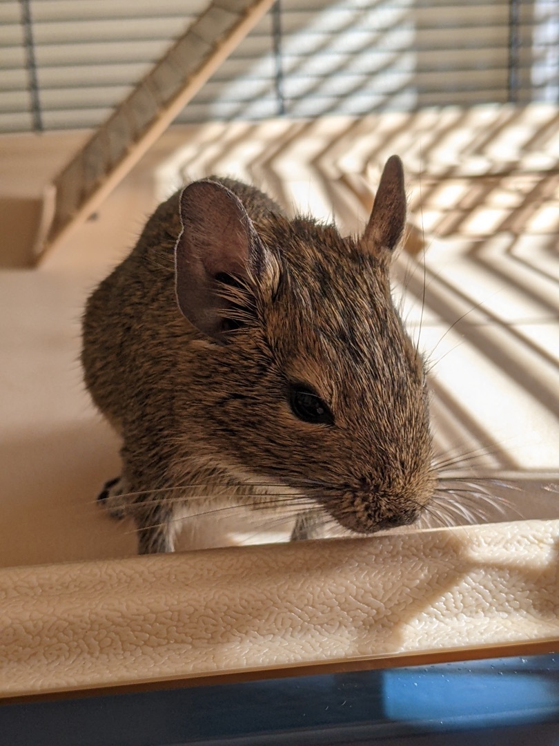 Doug is a sweet Degu looking for a home, preferably with other degus. He is outgoing and curious. Please apply on our website.