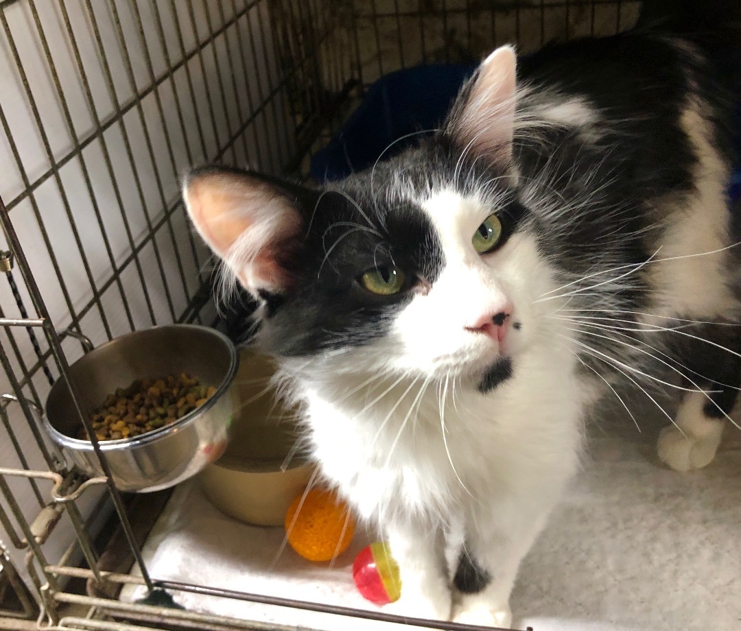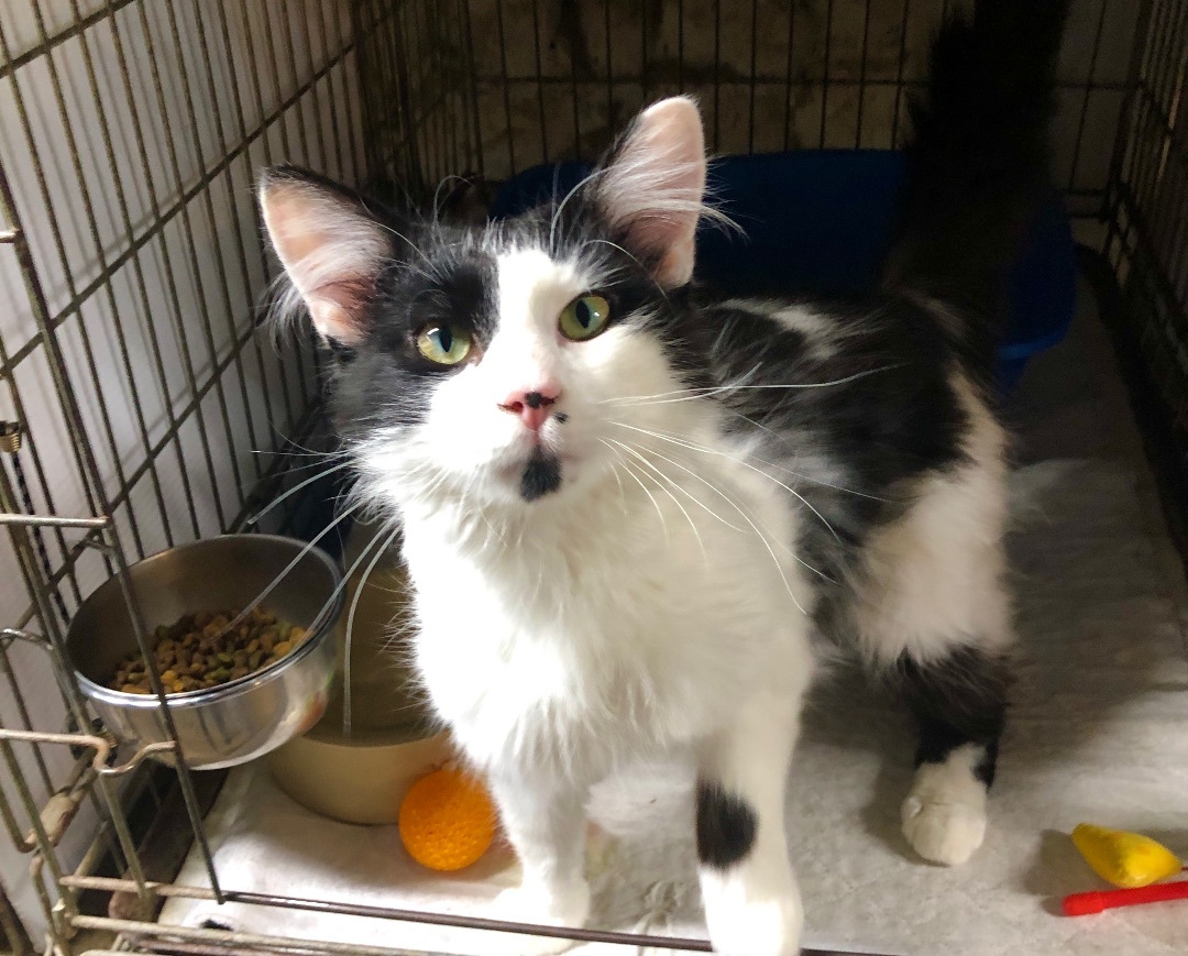 Ellington - Neutered Male. Approximate DOB is 3/22/2021. Ellington is current on his vaccines and has tested NEGATIVE for Feline Aids (FIV) and Feline Leukemia (FELV), Ellington is a LH Black and White. Ellington came to LAS after a visit from a Home Health worker found that he was at a home where he wasnt able to be cared for. When he arrived he was covered in mats and had bald patches of hair missing. He is an amazingly sweet, funny, social boy who is ready for his forever home! With time to adjust - this young guy would be a great addition to a family. If you would like to meet with Ellington, please complete our pre-adoption application on our website. https://www.loveastraycat.com/pre-adoption-application.html
