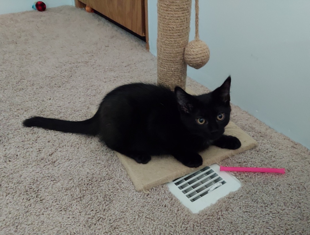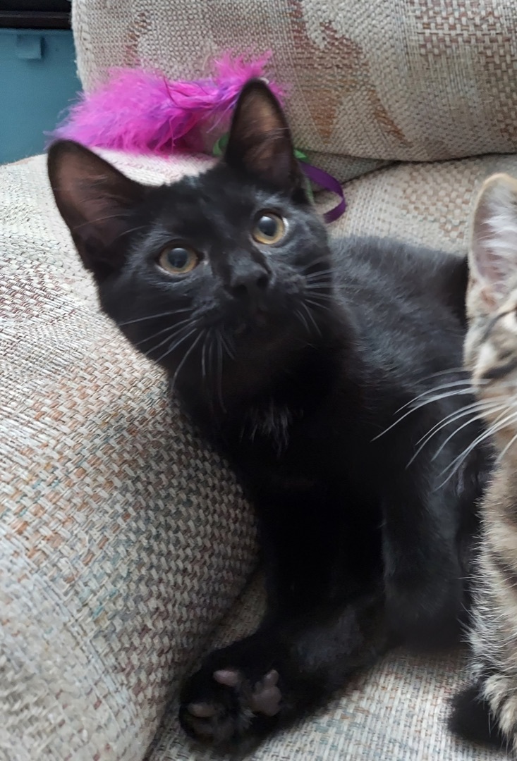 George is a playful and curious kitten. Anything new he must inspect! He loves pets and sleeping next to you. He is a very social kitten who would do best in a home with other cats so he is never lonely. He either meows or runs to you when you call his name. Very sweet, good natured boy. Estimated date of birth is 03-2022. **If looking for two kitties, Check out his brother Ringo! --- All of our kittens are currently in Foster Homes. They are not at our facility. Adoption counselors can arrange for you to meet the kittens once your application is approved. Kittens will be pre-adopted pending spay/neuter and may not be available for a few weeks. Deposits will only be accepted once an application has been approved and meetings have taken place. Deposits made PRIOR to approval are not refundable and will NOT hold a kitty for you. Kittens through 6 months $125 or 2 for $200; Kitties over 6 months $100 or 2 for $150. All of our cats/kittens are spayed or neutered, tested for FeLV/FIV, vaccinated against Distemper, and treated for fleas and other parasites. --- Adoption center is located at 7962 CLYDE PARK SW, BYRON CENTER MI 49315. Our shelter is open by appointment only. Applications must be submitted and approved before appointments will be set. Applications can be completed at http://www.focusonferals.org/adopt/adoption-application/. Our adoption fee is Kittens through 6 months $125 or 2 for $200; Kitties over 6 months $100 or 2 for $150. Come on out and meet the love of your life!